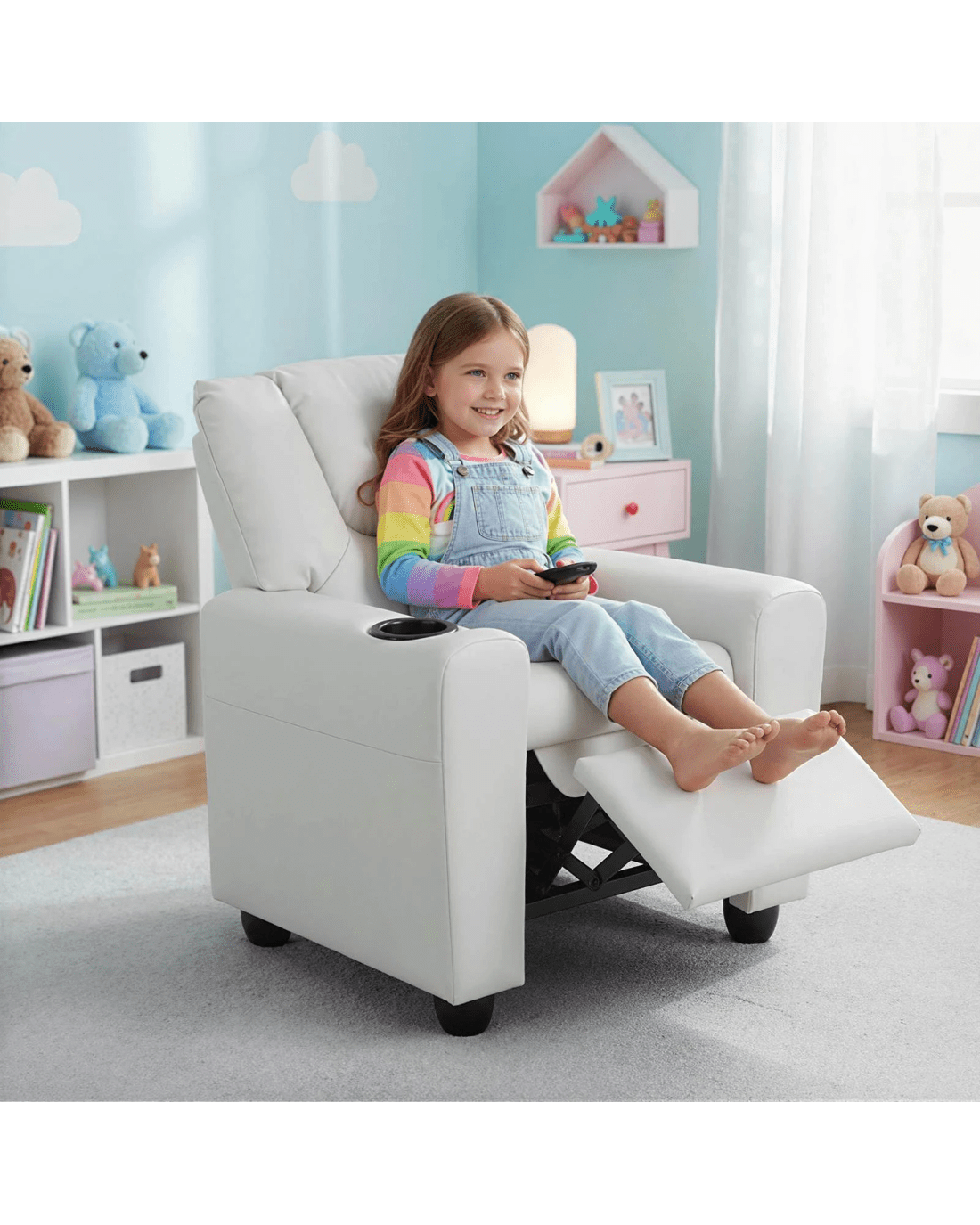 Costway Recliner Chair PU Leather Push Back Kids Sofa - Beige