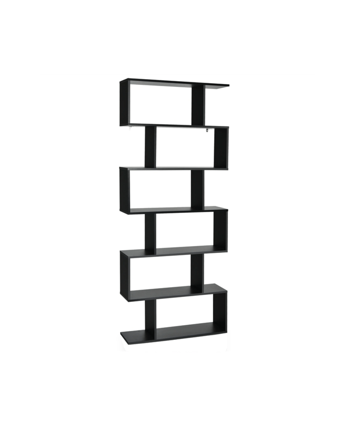 Costway S-Shape Bookshelf 6-Tier Wood Bookcase Display Shelf Storage Rack Home Office Furniture - Black