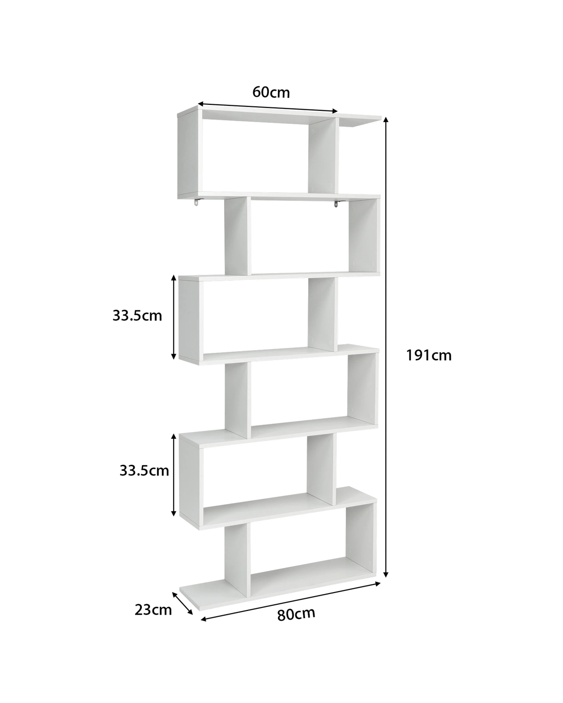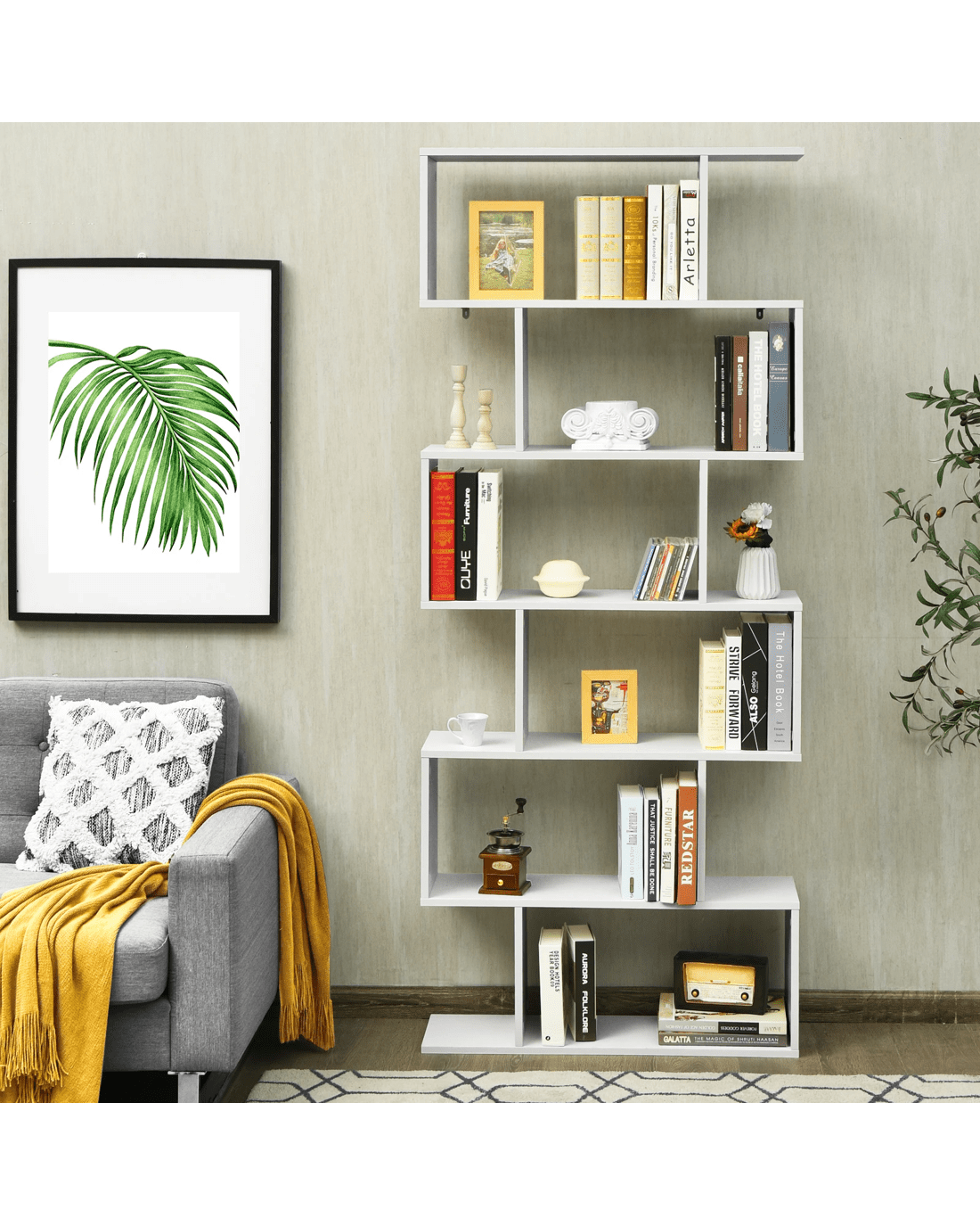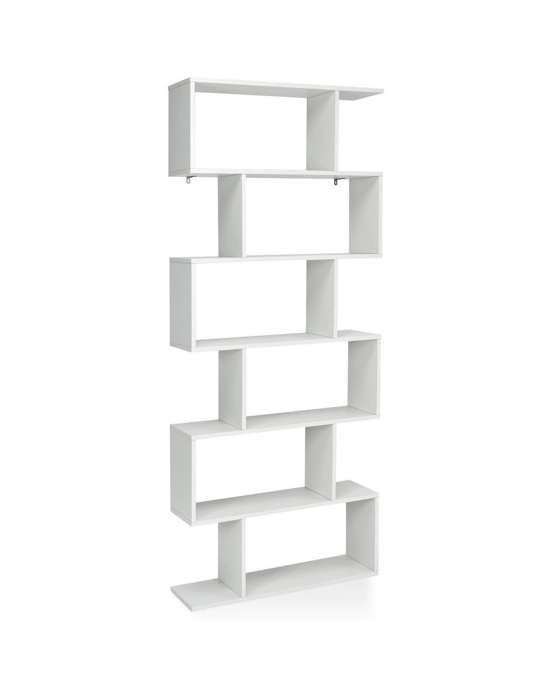 Costway S-Shape Bookshelf 6-Tier Wood Bookcase Display Shelf Storage Rack Home Office - White