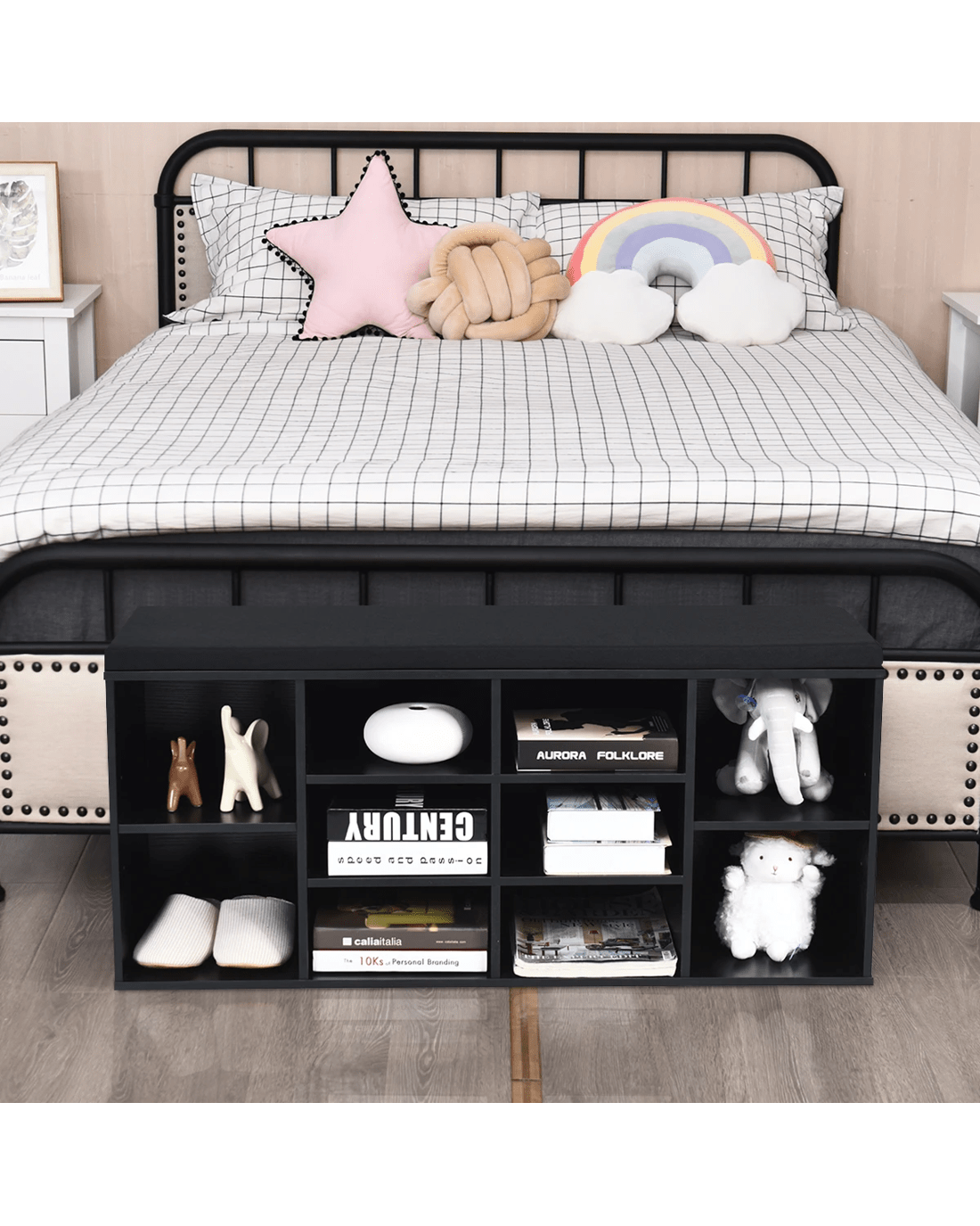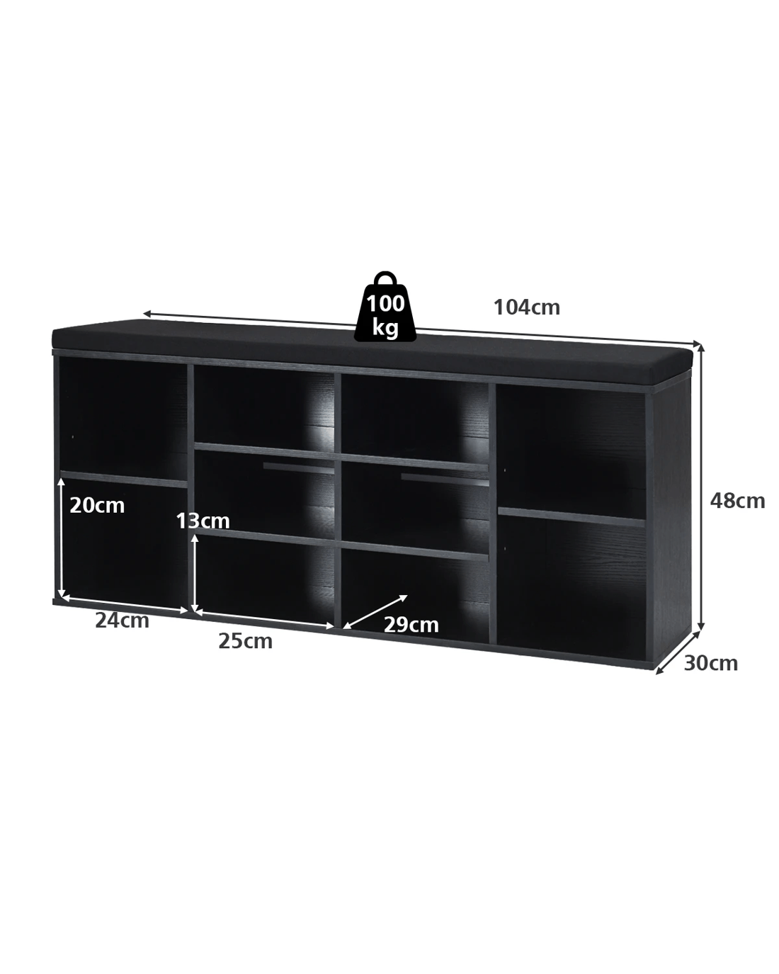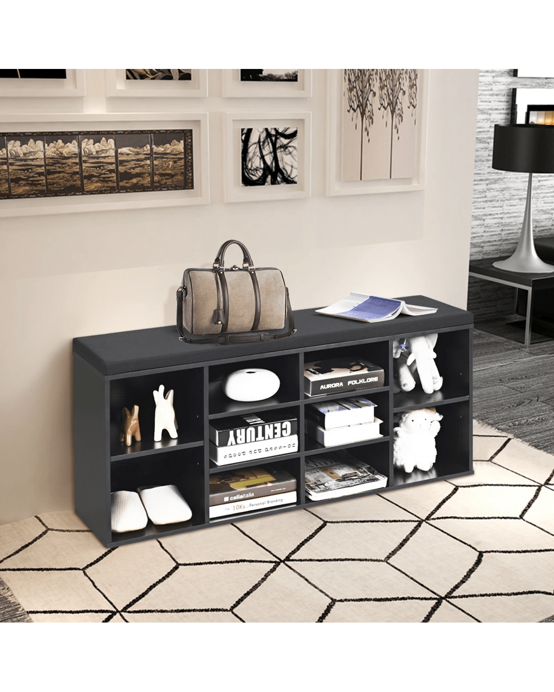 Costway Shoe Cabinet Bench Shoe Storage Rack Organizer Shelf Cupboard Box w/Padded Seat - Black