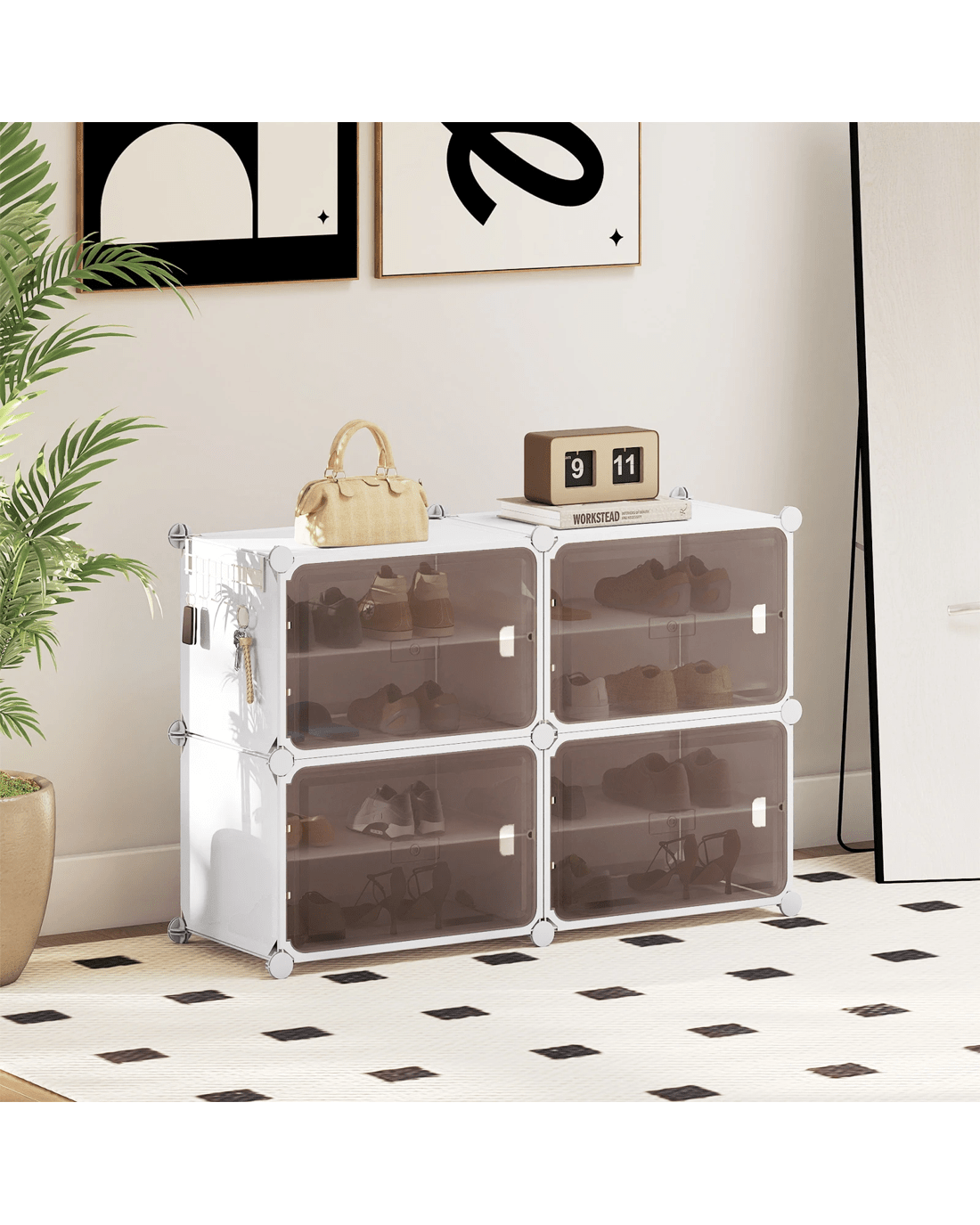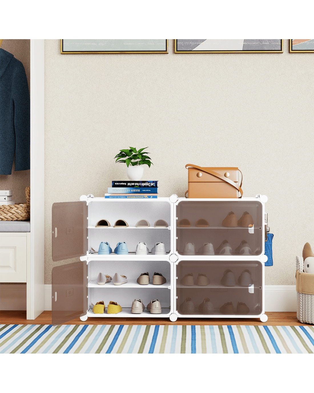 Costway Shoe Rack 4 Tier Shoe Storage Cabinet w/Removable Shelves Hooks Closet Organizer