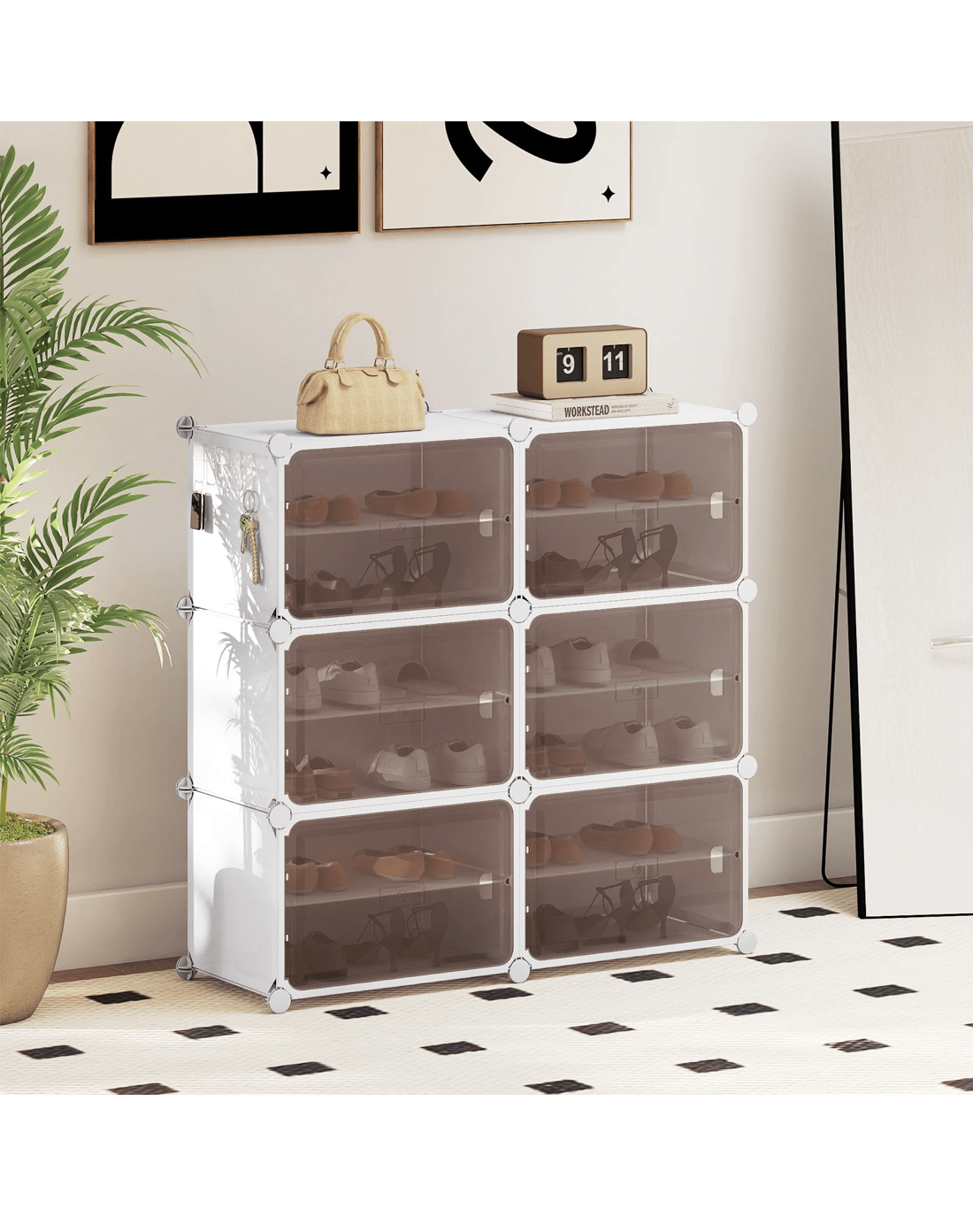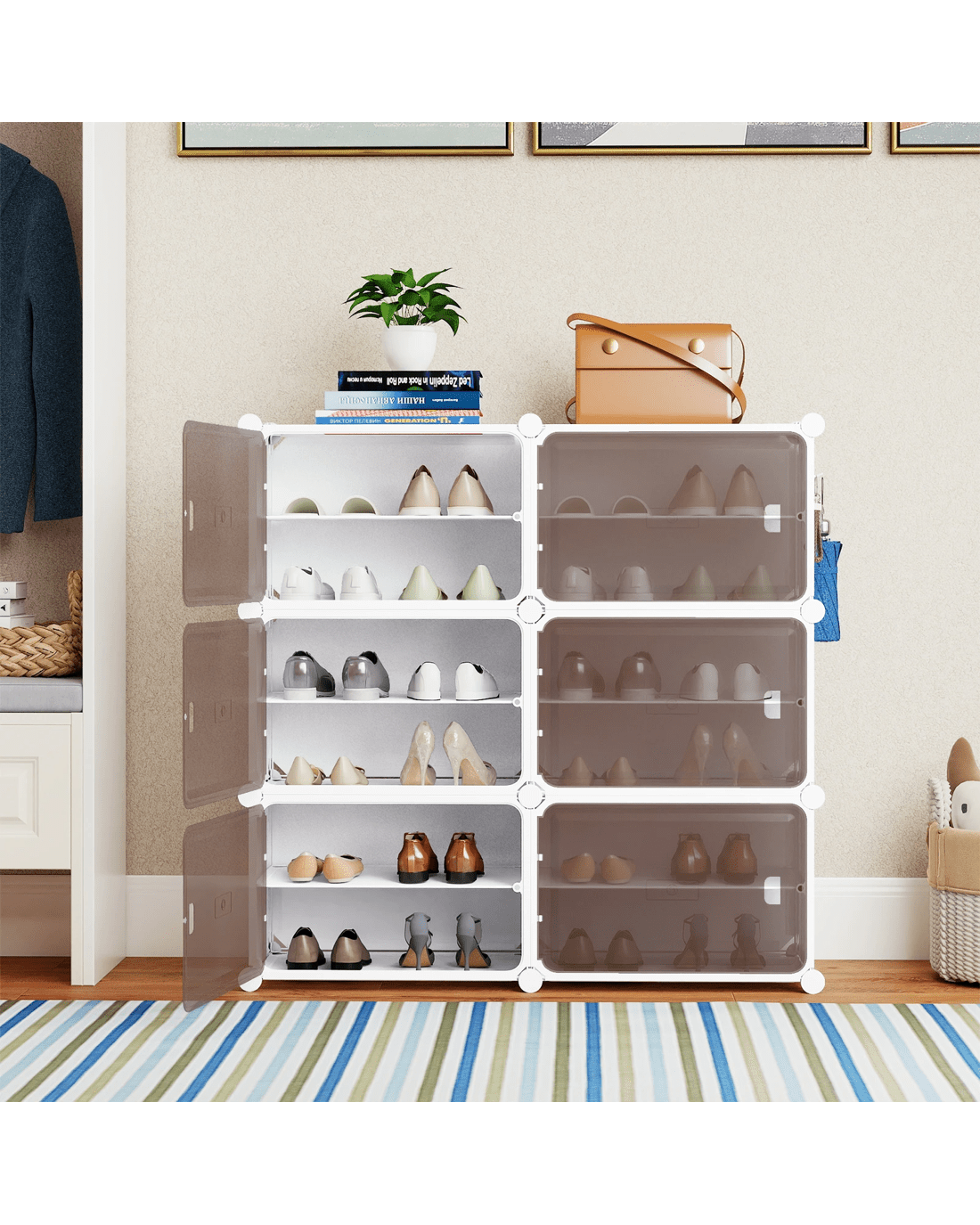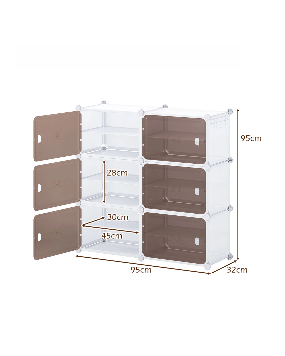 Costway Shoe Rack 6 Tier Shoe Storage Cabinet w/Removable Shelves Hooks Closet Organizer