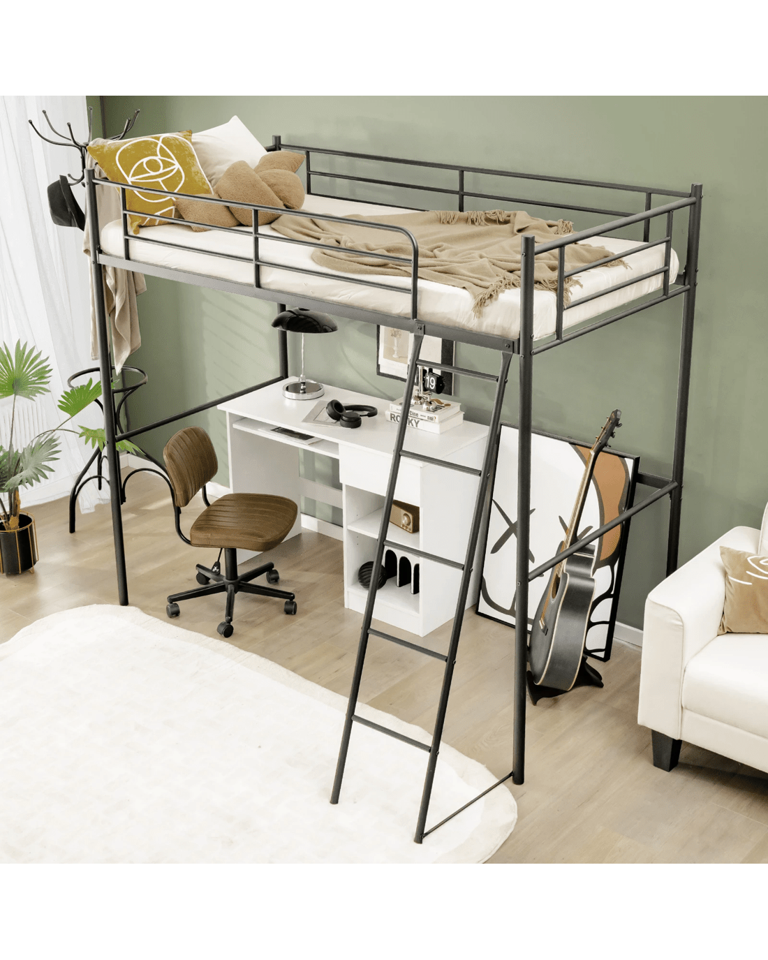Compact loft bed is ideal for the room, dormitory, apartment, etc