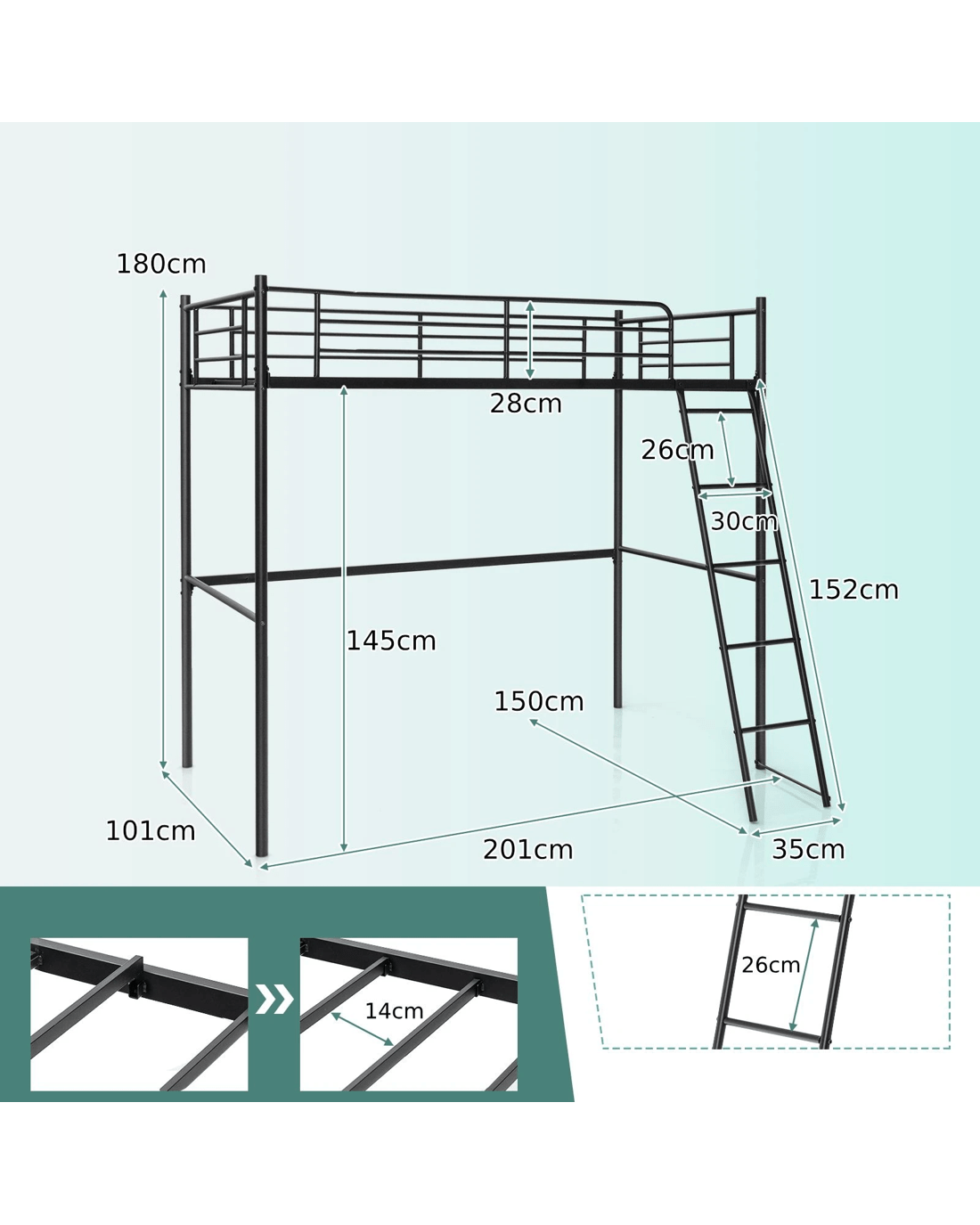 Overall Dimension(Ladder Included): 201 x 150 x 180 cm(L x W x H)