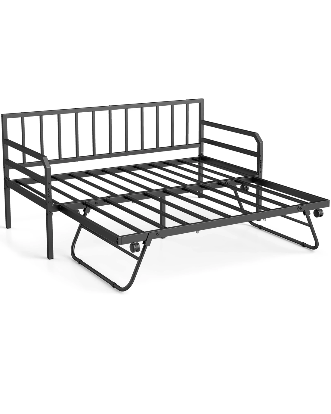 Sold by CostwayCostway Single Sofa Bed Metal Daybed Bed Frame Space Savor w/Pop up Trundle
