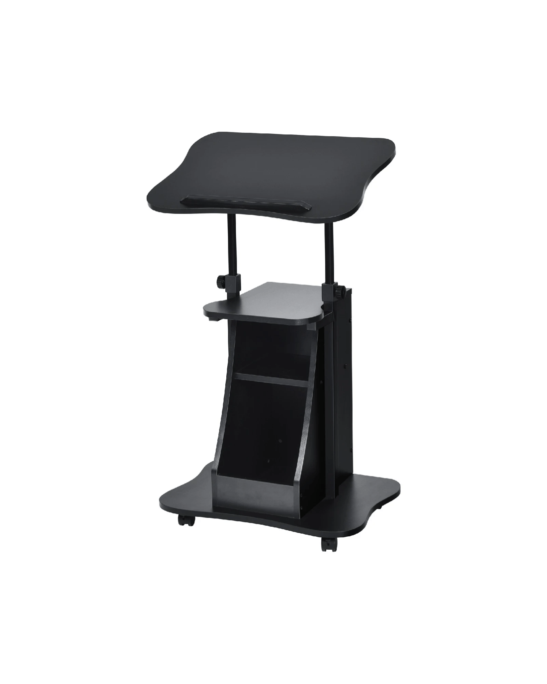 The height of the desk is adjustable from 72cm to 120cm by turning the knob, which brings you a lot of convenience in customizing your personal workspace. The tiltable desktop keeps monitors at eye level to minimize fatigue while adding extra storage space. There is also an anti-slip stripe to prevent items from falling. With an open shelf and 2 open compartments, the standing desk helps you organize your books, documents and office supplies. Thickened boards and heavy duty steel frame make it stable and not easy to shake. Thanks to 4 smooth wheels(2 wheels are lockable), you can move it anywhere you want.