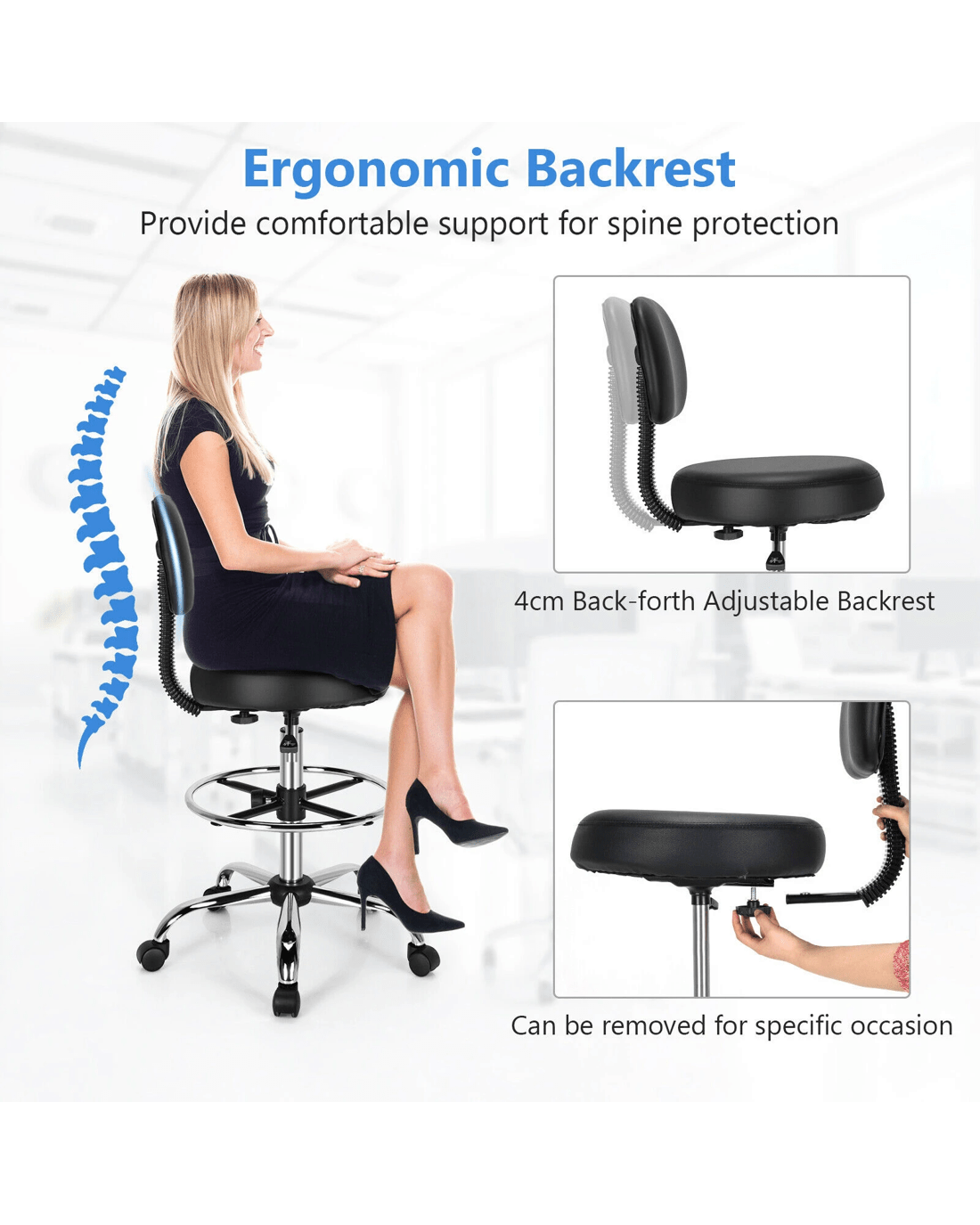 Costway Swivel Drafting Chair Ergonomic Office Armchair