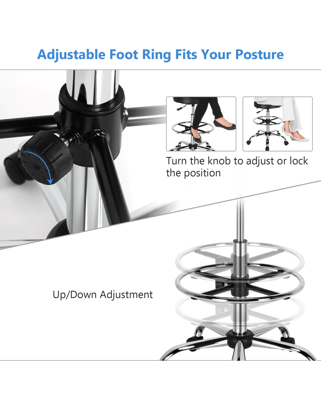 Adjust the footrest up and down to fit your sitting habit
