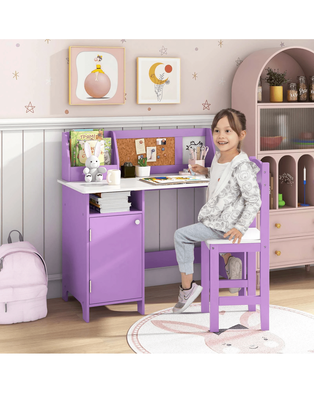Allow your little ones to study cozily with our little ones desk and chair set! Equipped with an ergonomic chair, this little onesren study table set provides little ones with a comfortable sitting experience during study. The reasonable clearance between the tabletop and the seat protects little ones' spine and helps little ones to develop a good sitting habit. Besides, the large tabletop is spacious for little ones to write, draw or play. And the bulletin board serves as a reminder. With an enclosed cabinet and an open compartment above it, the little ones learning desk is able to accommodate various little ones study supplies and toys. Furthermore, the study pine wood legs of the chair ensure stability.
