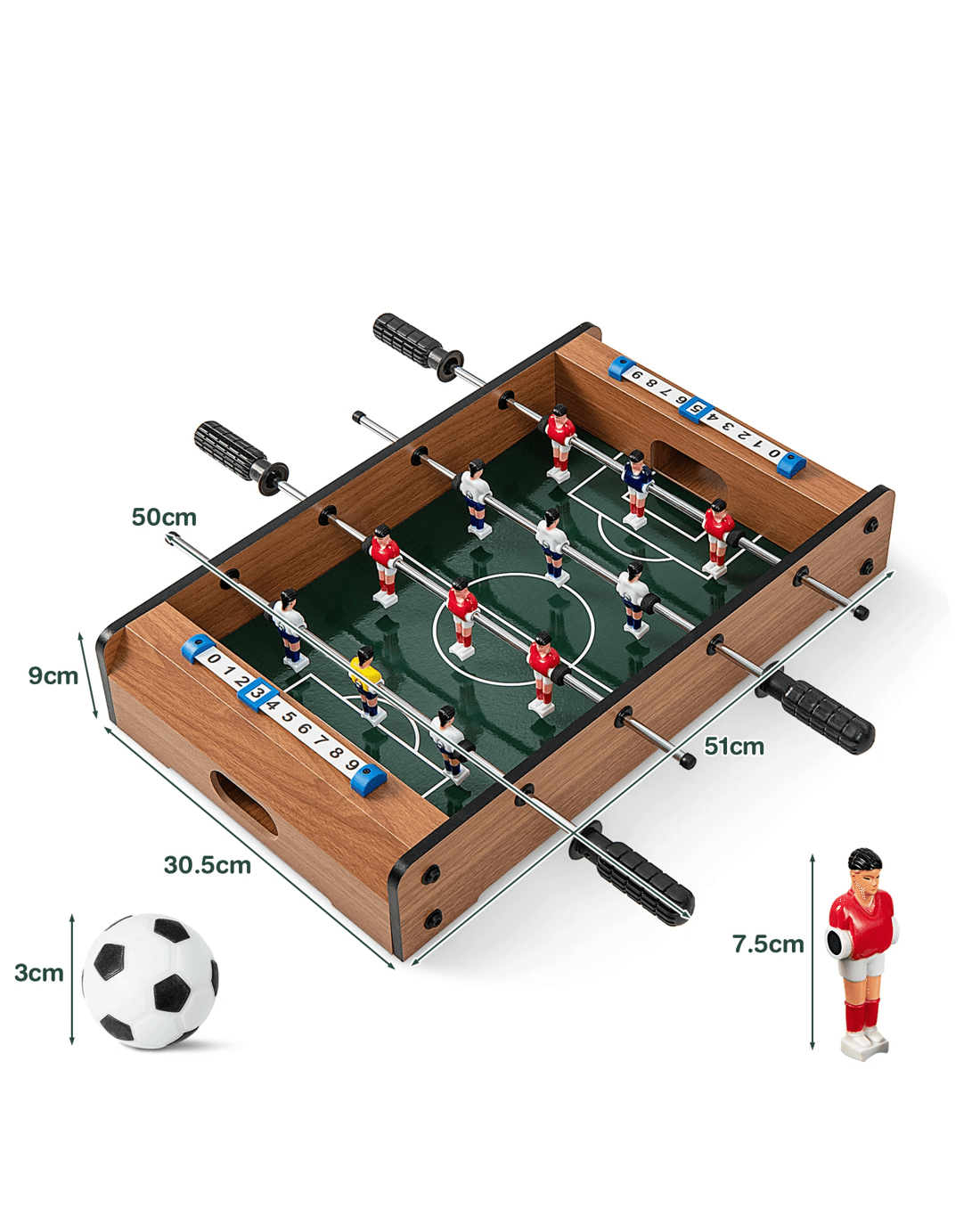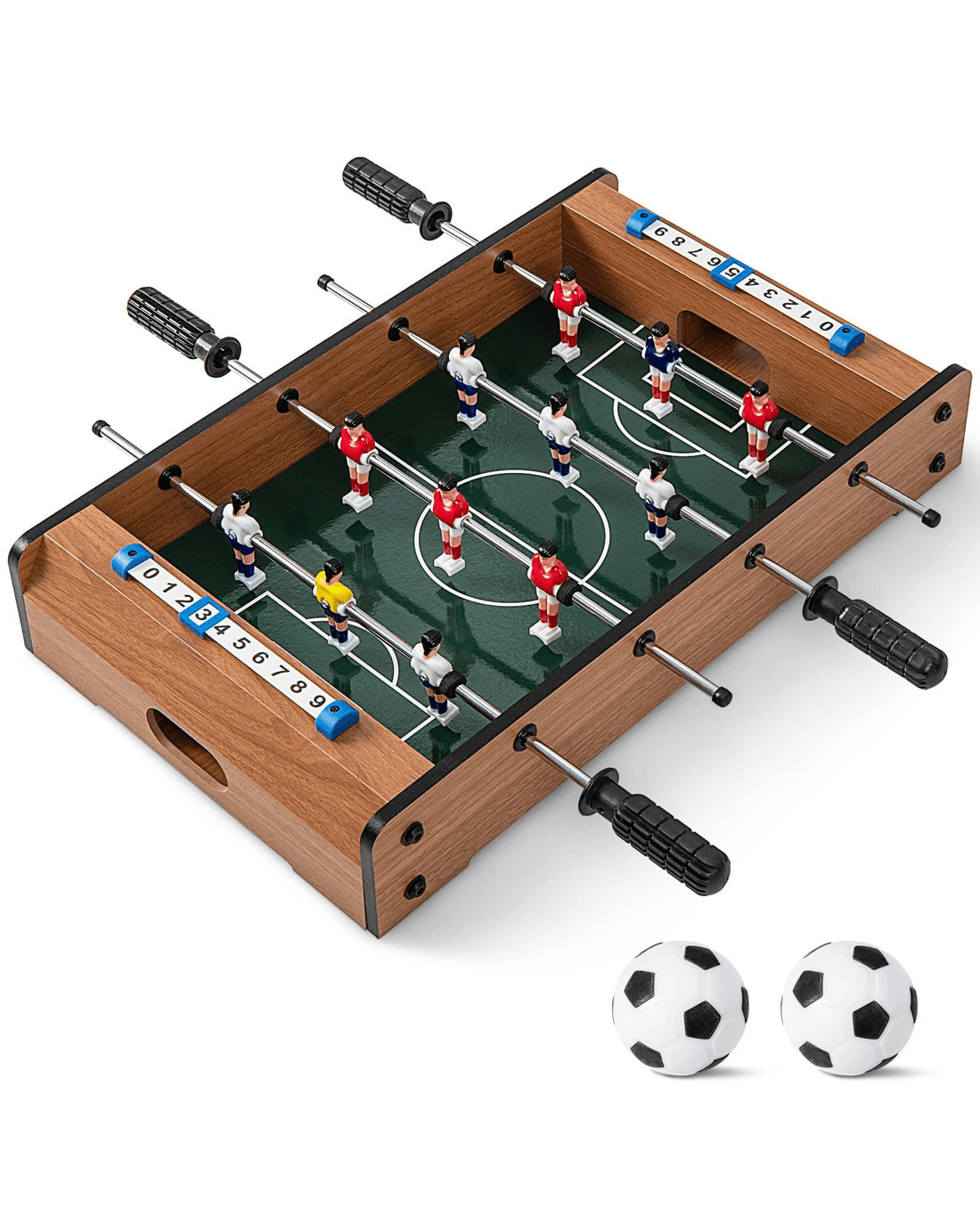 If you are looking for an entertainment sports equipment for exciting family game night or other indoor activities, this foosball table deserves a try. With exquisite players and goal box, the tabletop foosball game creates a realistic scene and entertains little ones a lot. In addition, the wear-resistant and easy-to-grip handles allow for a better game experience. The foosball table can help little ones improve hand-eye coordination and promote brain development, greatly enhancing sports' enthusiasm. Besides, this football game table is a best gift for your little ones and enhance parent-little ones interaction at the same time. More, the football table is applicable to various occasions, such as home, office, game room and Christmas party, etc.
