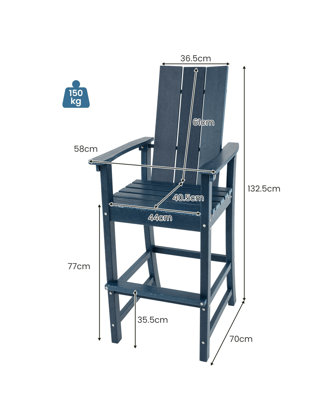 Costway Tall Adirondack Chair Outdoor Bar Stool Patio Bistro Chair Backyard & Garden
