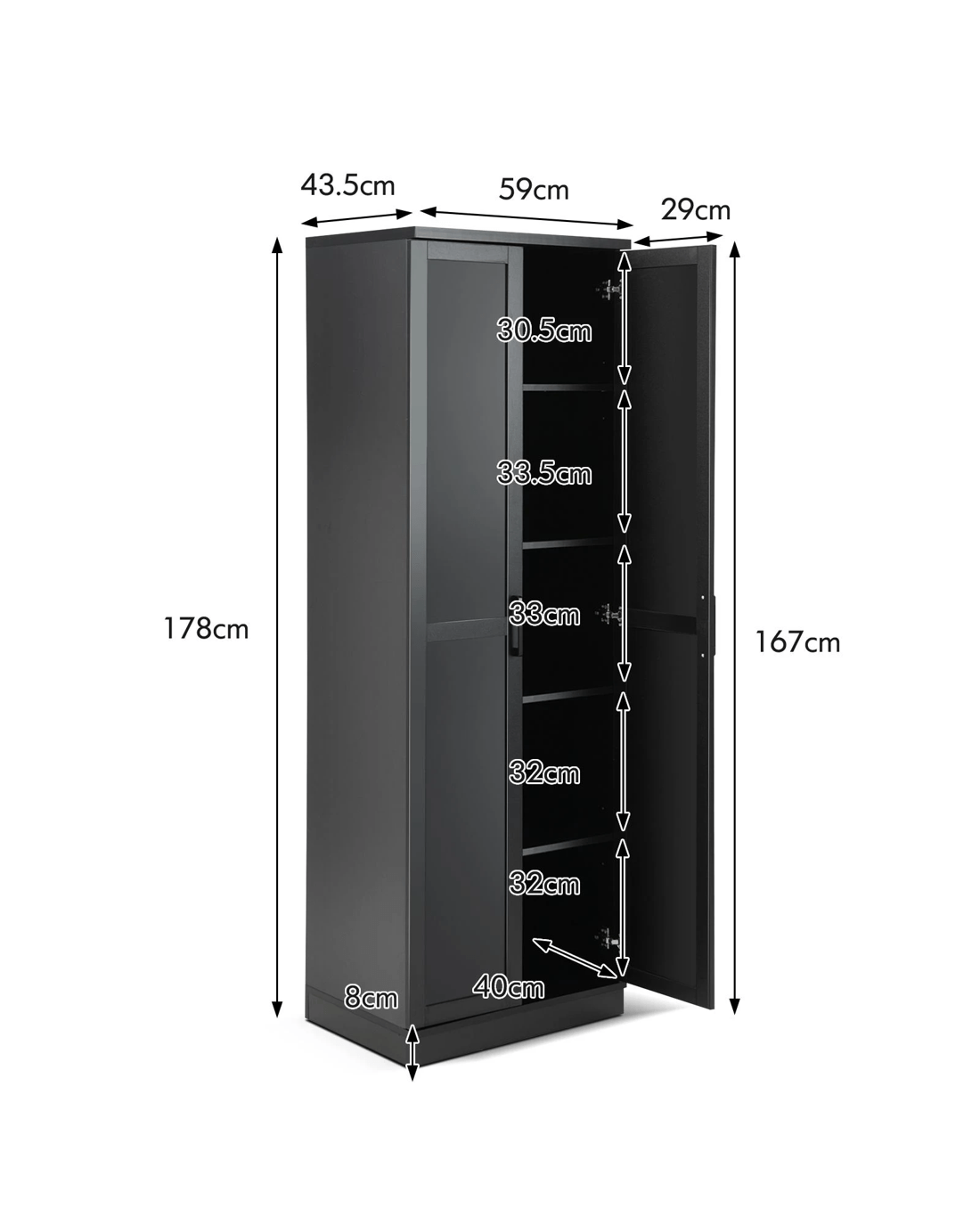 Product Dimensions:59 x 43.5 x 178 cm (L x W x H)