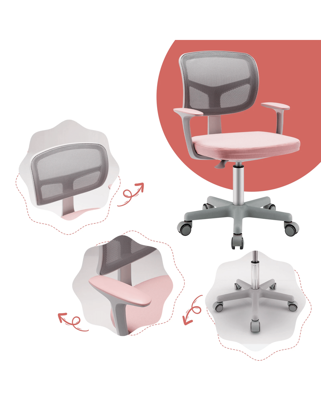 Costway Teen Study Desk Chair 360° Swivel Mesh Chair - Pink