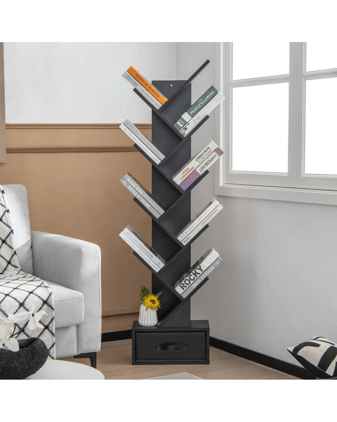 Costway Tree Bookshelf CD Display Rack Storage Organizer - Black