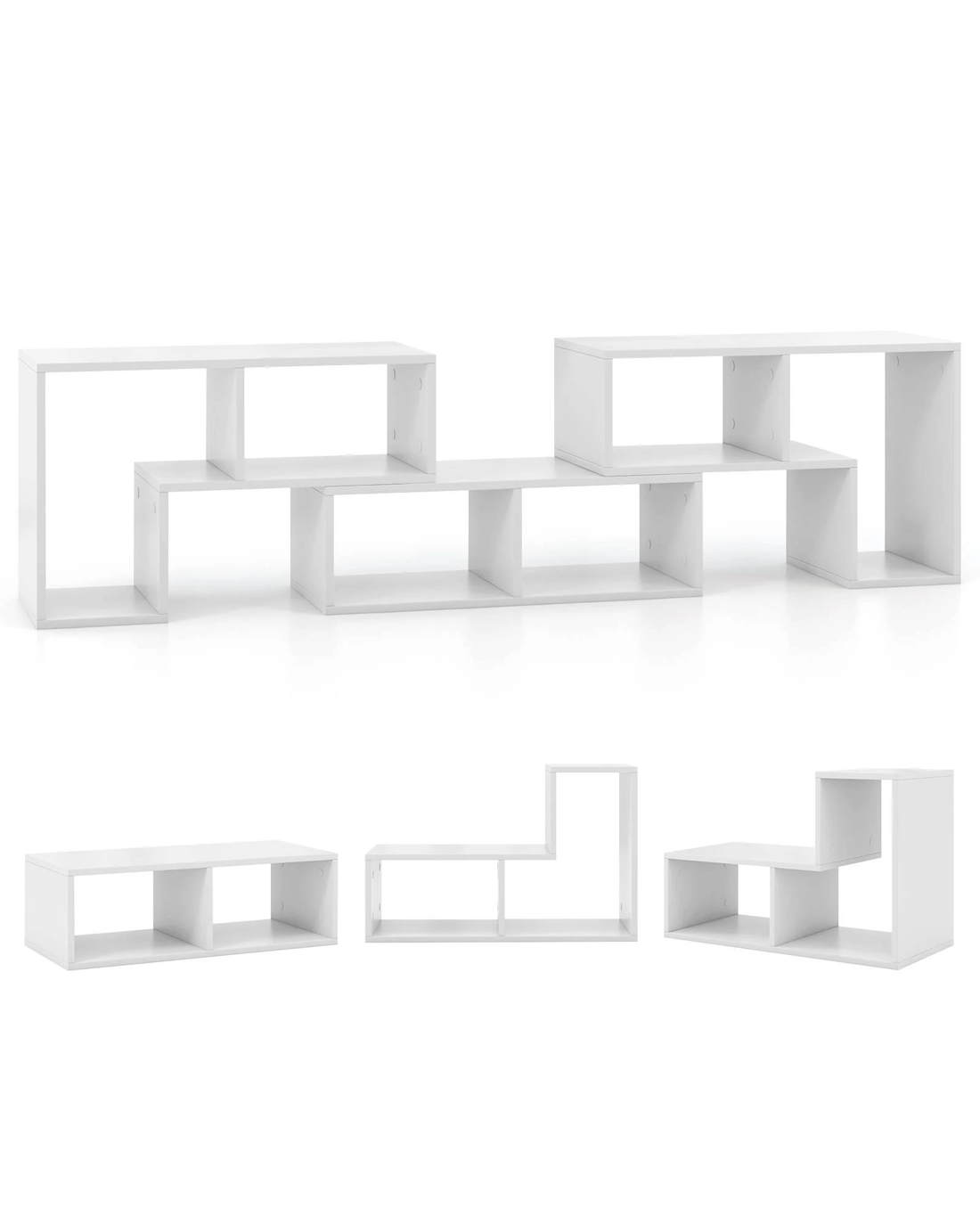 Costway TV Cabinet Entertainment Unit 3-Piece Convertible Media Console Table w/Storage Cubes