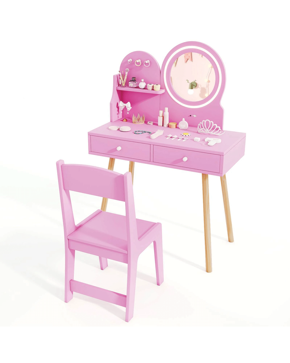 Costway Vanity Set Makeup Dressing Table Chair Set 2-Color Mirror
