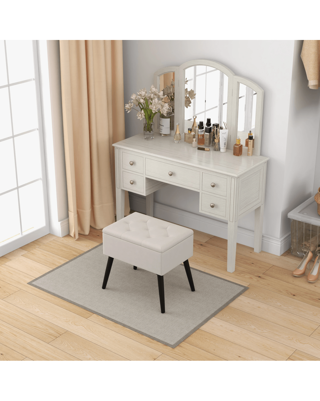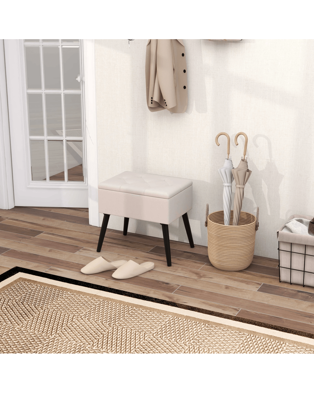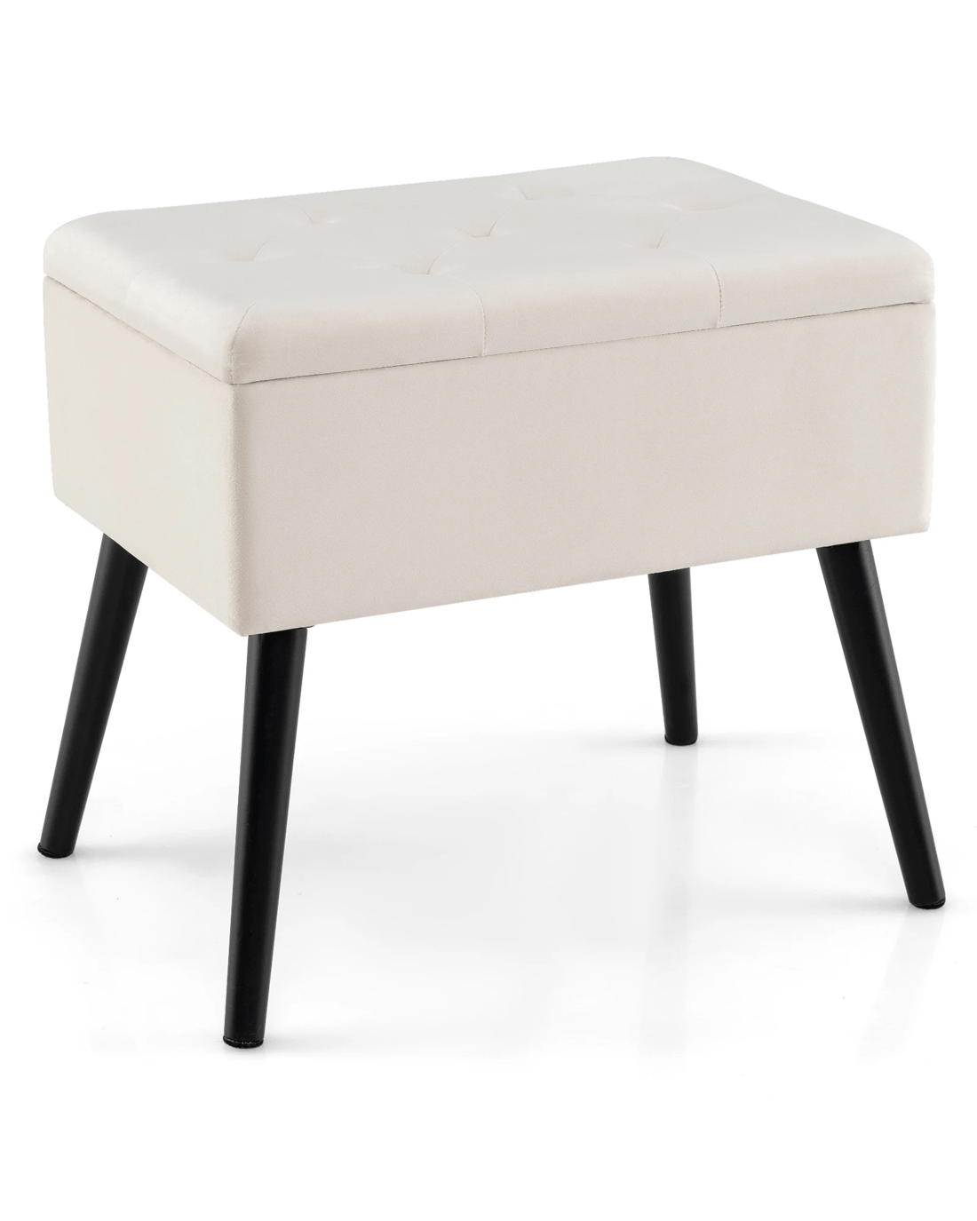 Costway Velvet Storage Ottoman Vanity Stool Flip Top Bench Padded Footrest Seat Chair Storage Box - Beige