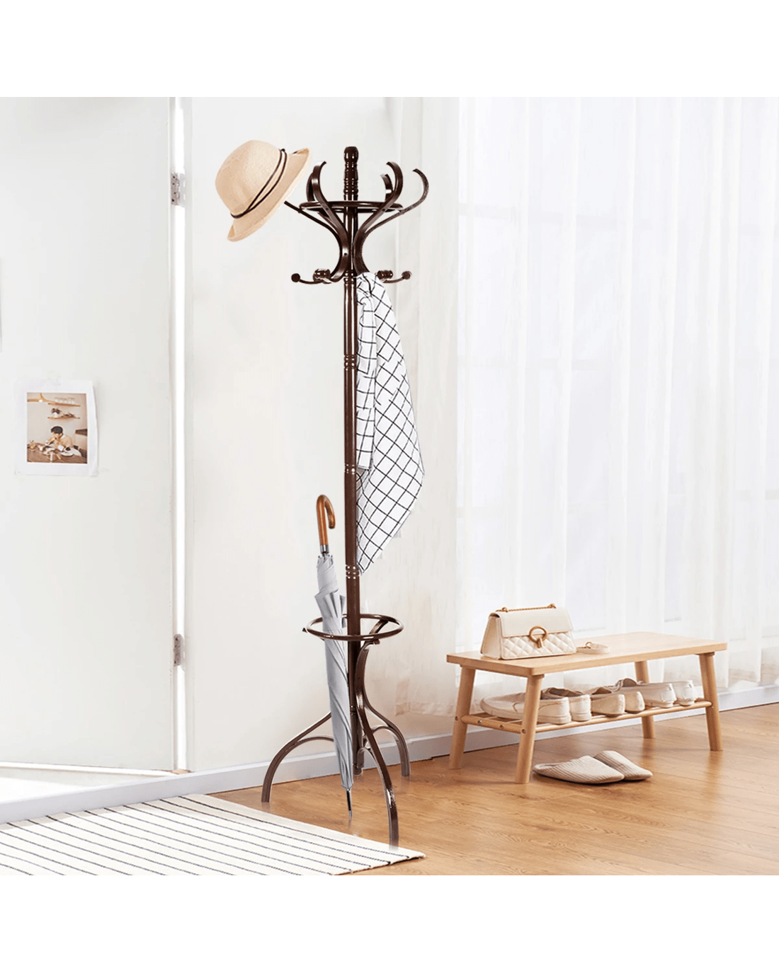 12 hooks & lower umbrella storage rack for the whole families' daily essentials