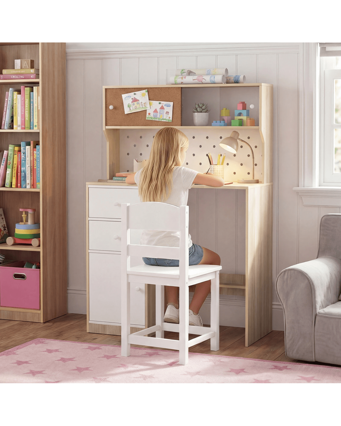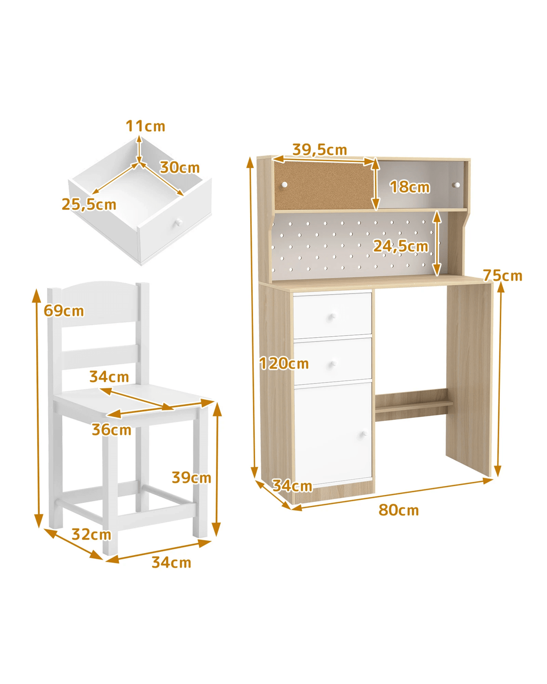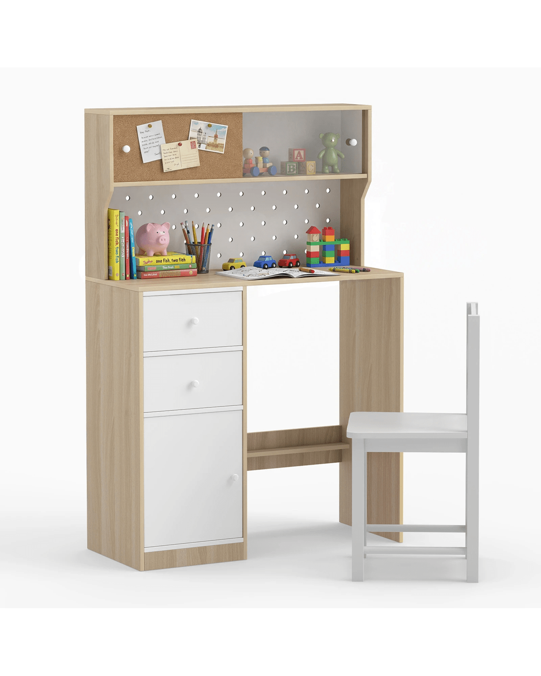 Costway Wooden Desk Chair Set Study Writing Table w/Pegboard