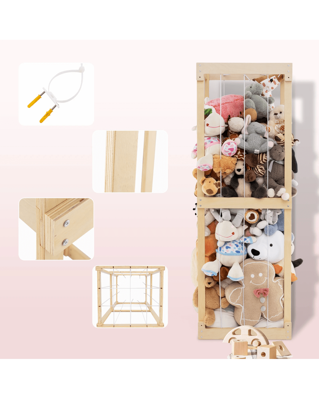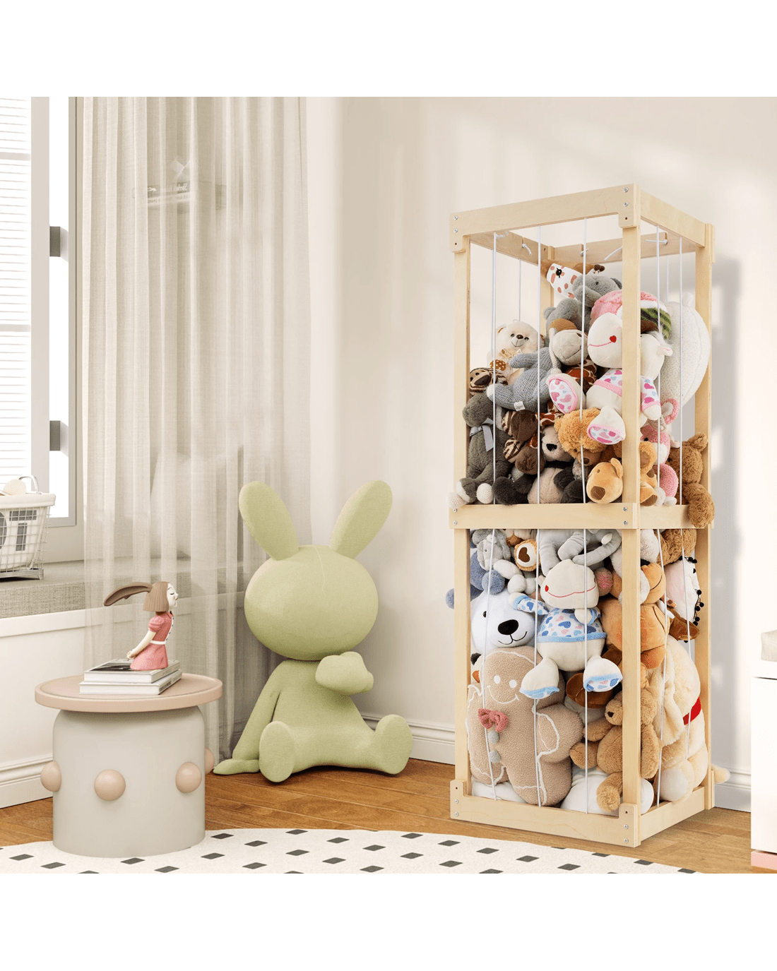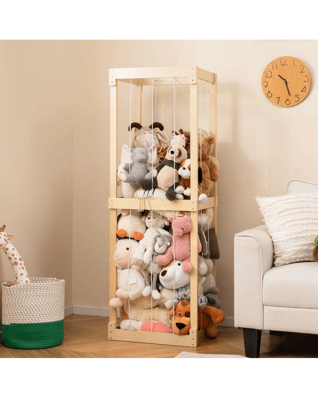 Keep your little one's play area tidy and their plush friends easily accessible with our toy storage organizer. The stuffed animal storage zoo set offers an interactive way for little ones to organize and display their plush toys, making cleaning up fun and easy. Open top and elastic ropes allow for convenient access. The solid frame and anti-toppling design ensure excellent security and sturdiness. Additionally, this stuffed storage organizer will help declutter your home and teach little ones how to keep their spaces tidy. Get ready to transform chaos into order with this stuffed animal storage.