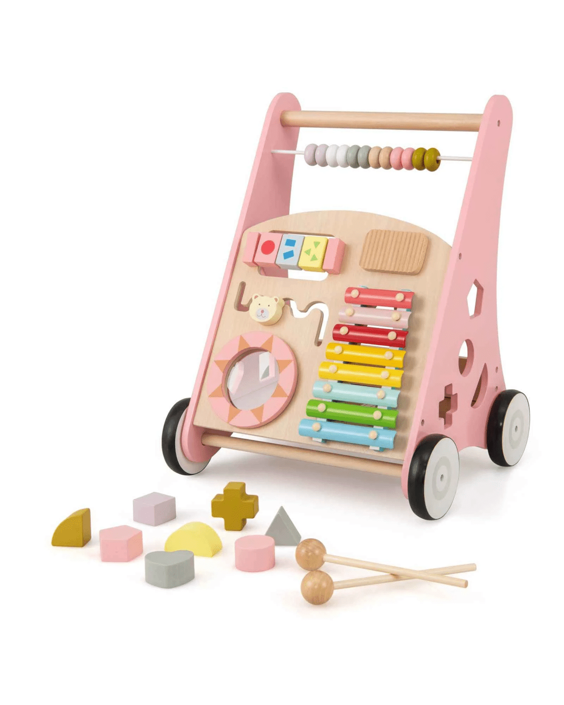 Costway Wooden Walker Push Walker Activity Center Toy - Pink