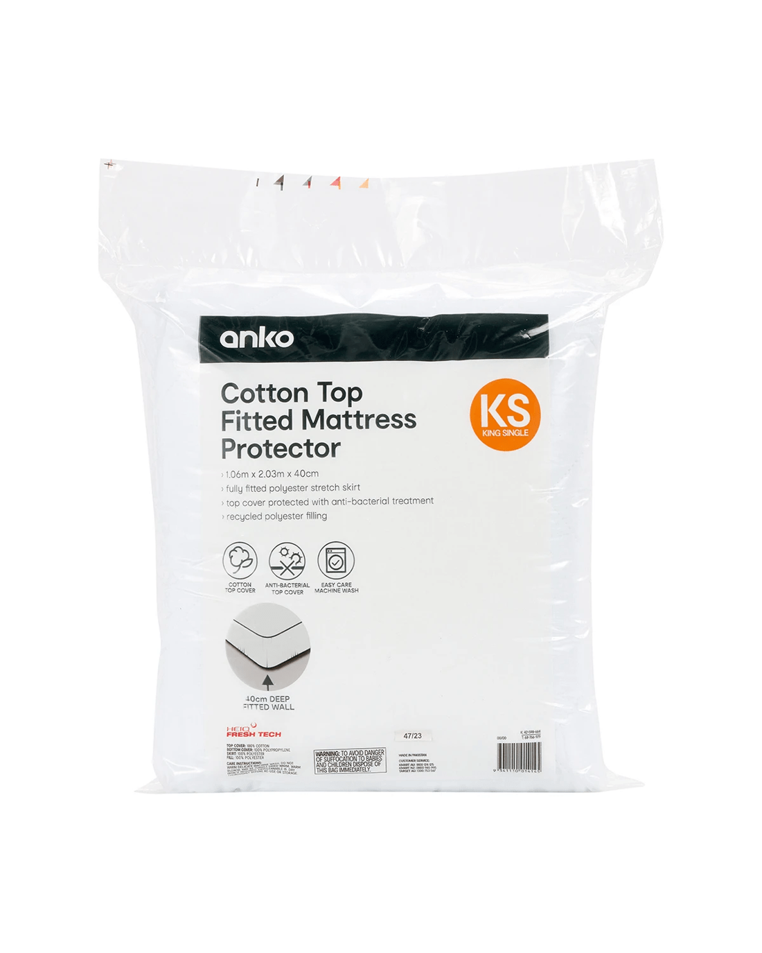 Cotton Top Fitted Mattress Protector - King Single Bed, White