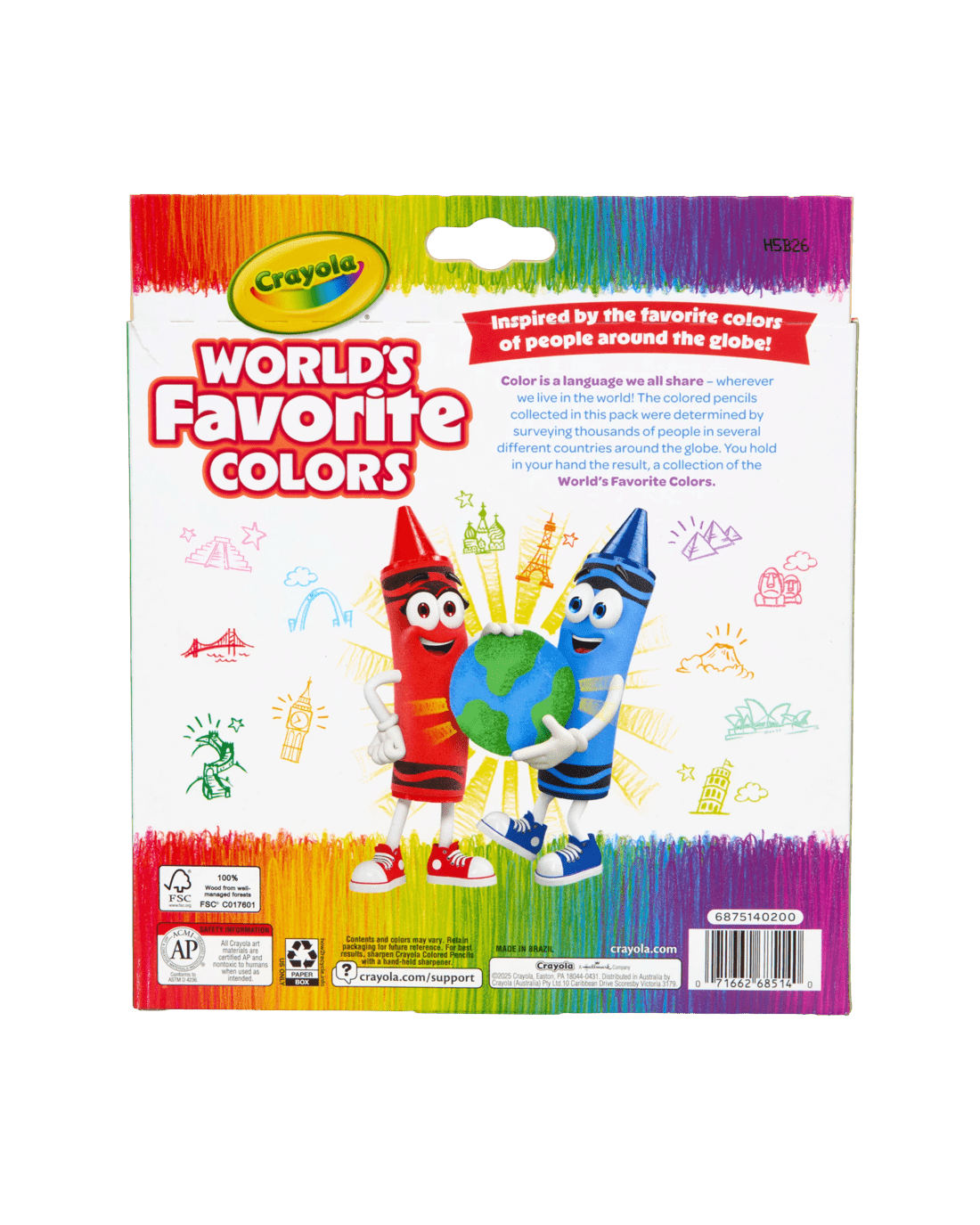Brighten every masterpiece with Crayola’s 50 Pack World’s Favourite Colours Coloured Pencils. With a wonderful array of shades chosen from global favourites, you can draw, shade and sketch to your heart’s content. Each pencil has a strong, break-resistant core for worry-free creativity whether you are at home, school or travelling. Perfect for all ages, this set nurtures artistic confidence in kids and adults alike. Enjoy hours of colourful fun and share imaginative moments with friends and family. It also makes a thoughtful present for any budding artist. Let your imagination soar with this inspiring pencil pack and start your next creative journey now.Features