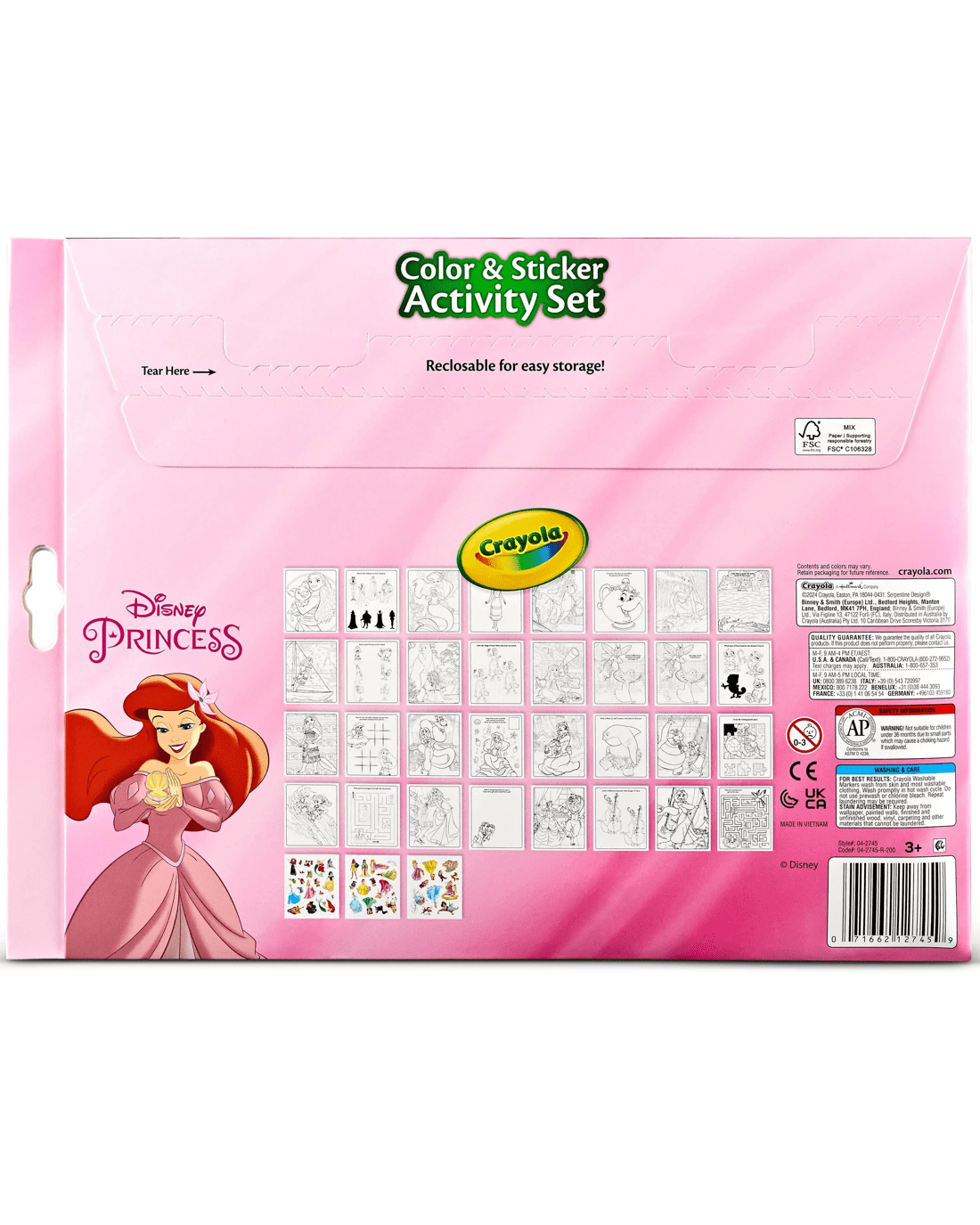 Product Attributes: The smart design keeps colouring pages, stickers, and markers neatly organised for on-the-go fun, while the resealable Foldalope makes it easy to pack up and reuse again and again.