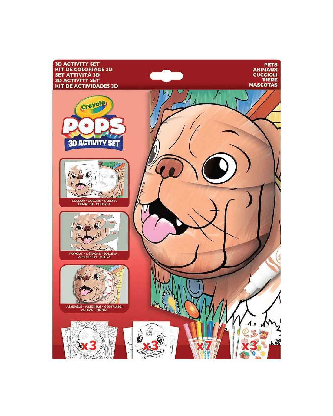Bring your artwork to life with this Colour POPS 3D Activity Set from Crayola. This unique sets let you colour and construct 3 amazing designs that actually pop out from the page. Simply colour both the POPS art page and the background page, then carefully separate the art and insert the POPS art page into the slots on the background page and watch your artwork take shape.