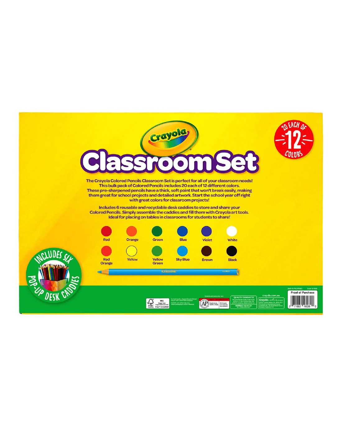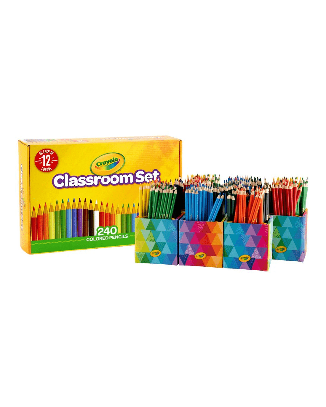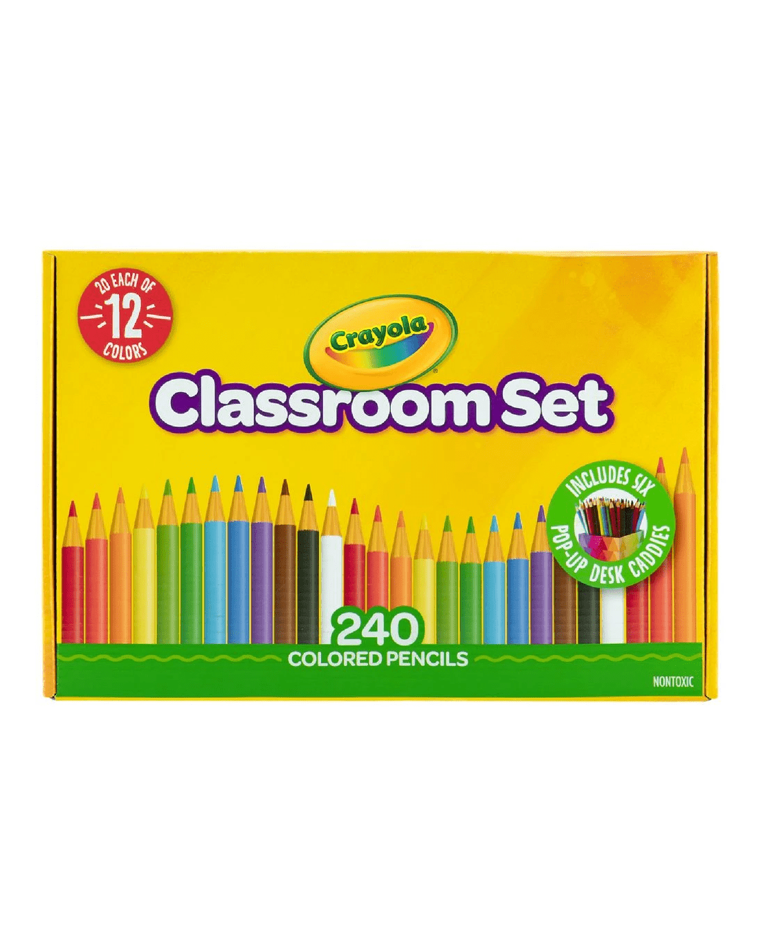 Prepare for a fun day of activities with this Crayola Classroom Pack. It comes in a box that folds out into desk caddies, so you divide these fun coloured pencils throughout the whole class. There are 240 pencils in this pack.