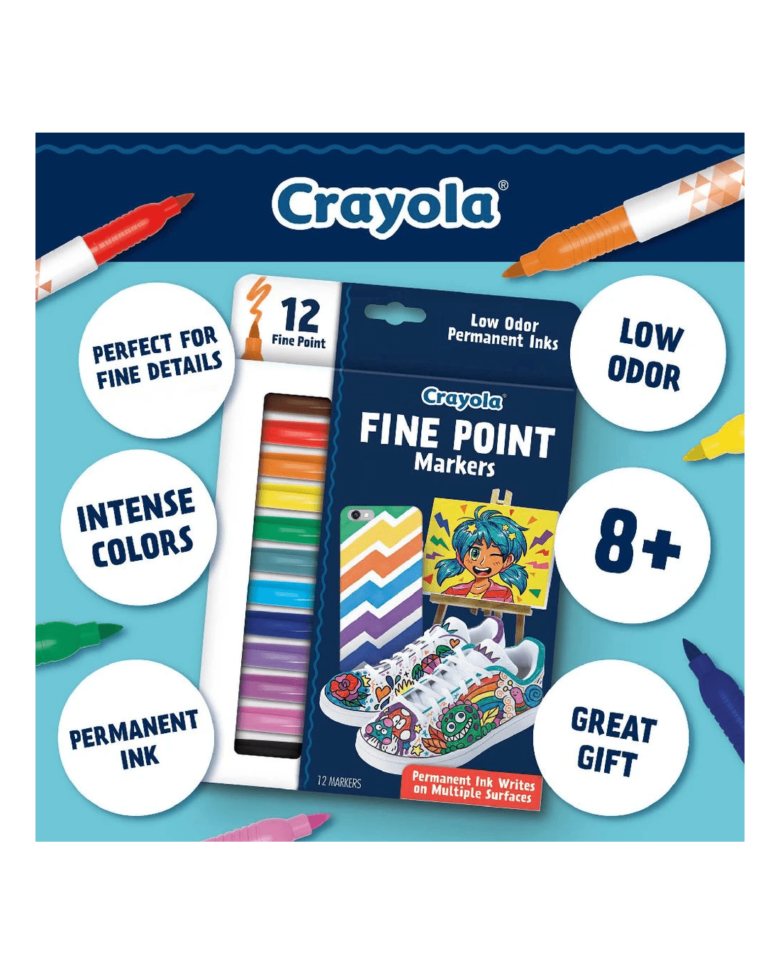These Crayola Fine Point Markers are perfect for fine details, lettering, and doodling. They have an intense permanent ink that won’t smudge or bleed through, so they’re great for decorating notebooks or bullet journals. They’re a great way to create with colour, whether you’re filling in a colouring book or just doodling.