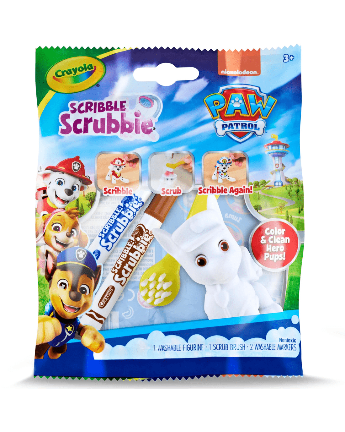 - Includes 1 Washable Scribble Scrubbie Paw Patrol Pet Figurine, 2 Washable Markers and 1 Scrub Brush