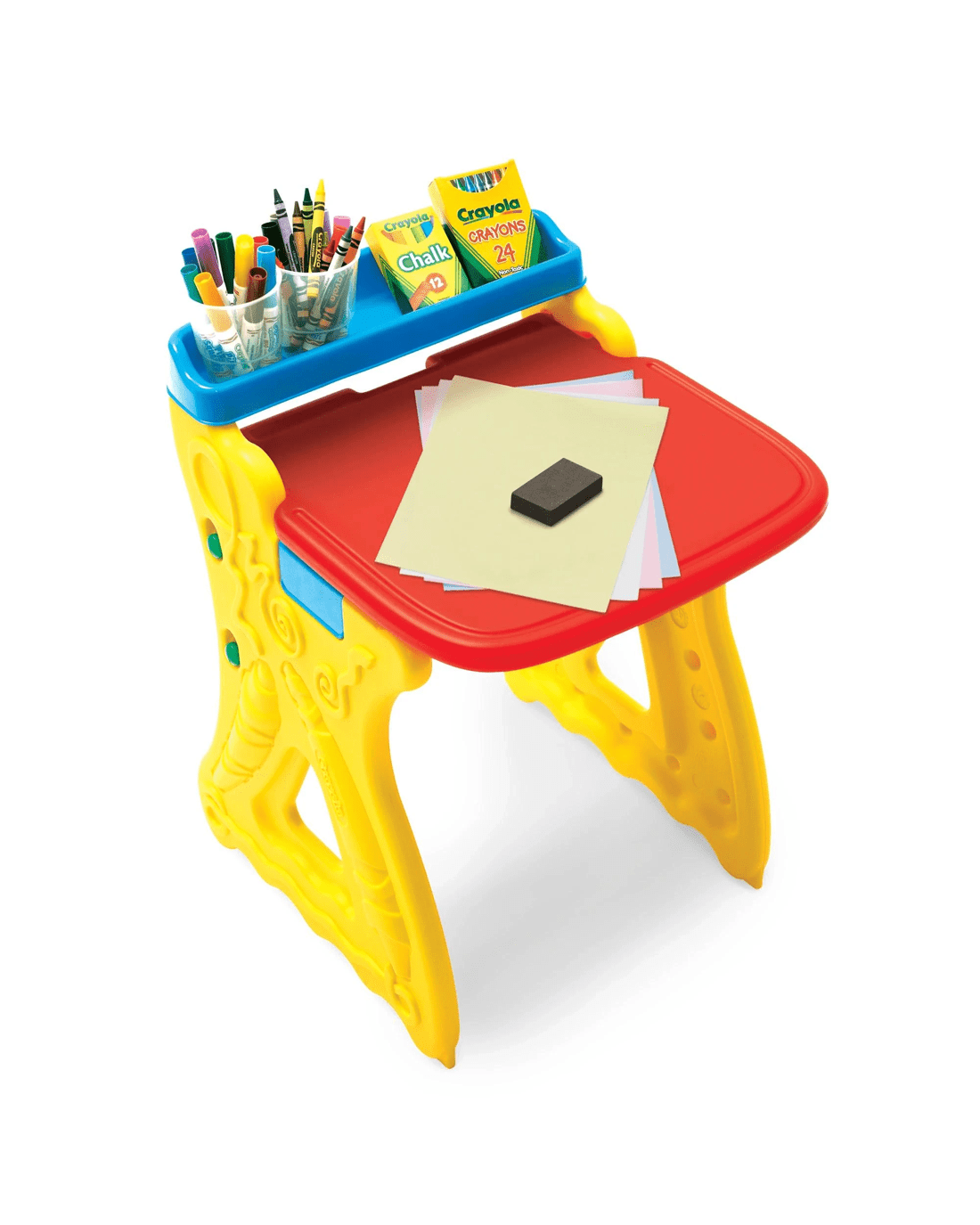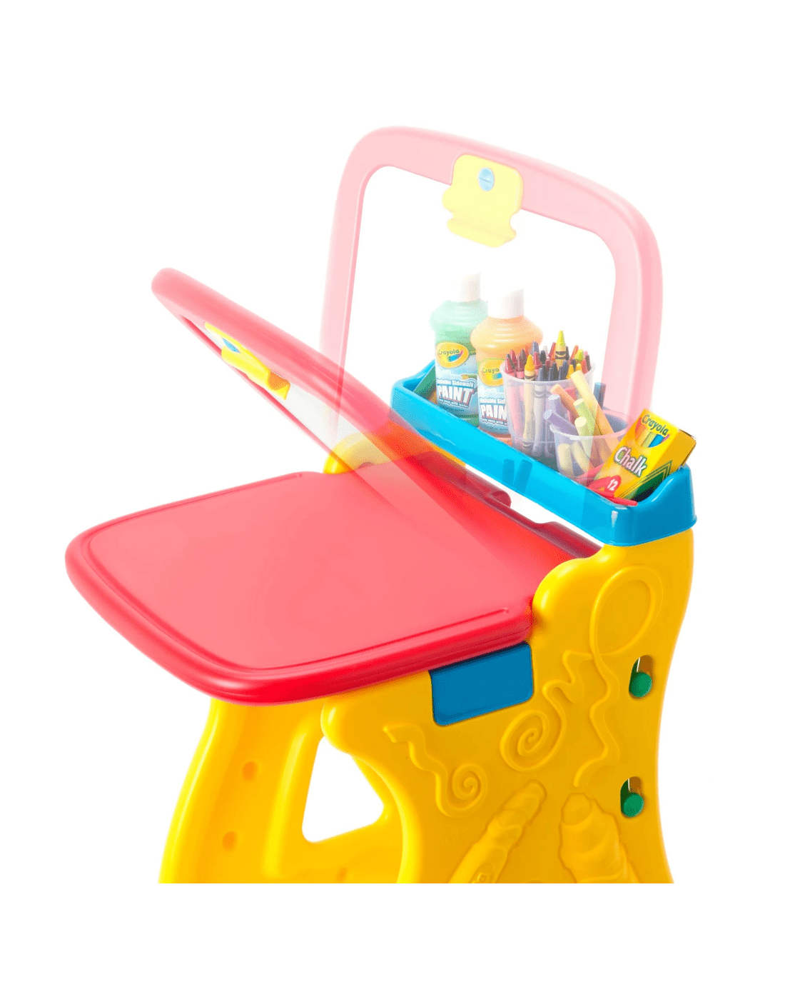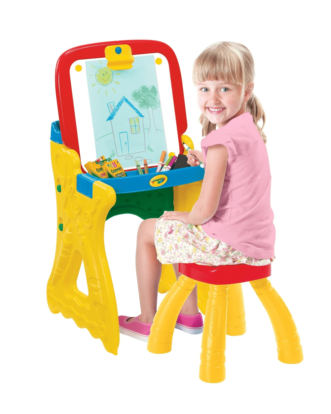 Spark your child's creativity with the Crayola Play N Fold Art Studio, cleverly designed as both a desk and an easel to suit every artistic mood. With a clever chalkboard surface and handy paper clip, it’s so easy for your young artist to switch between drawing and painting. The smartly arranged storage keeps all their supplies within arm's reach, helping your child stay organised as they explore new ideas. This playful studio comes with coloured paper, an eraser, and a selection of magnetic letters and numbers to foster both creativity and learning. Set up their very own art space and watch their imaginative journeys unfold. Treat your child to this fun art studio and encourage their creative adventures today.
