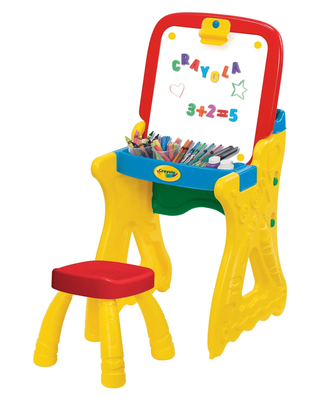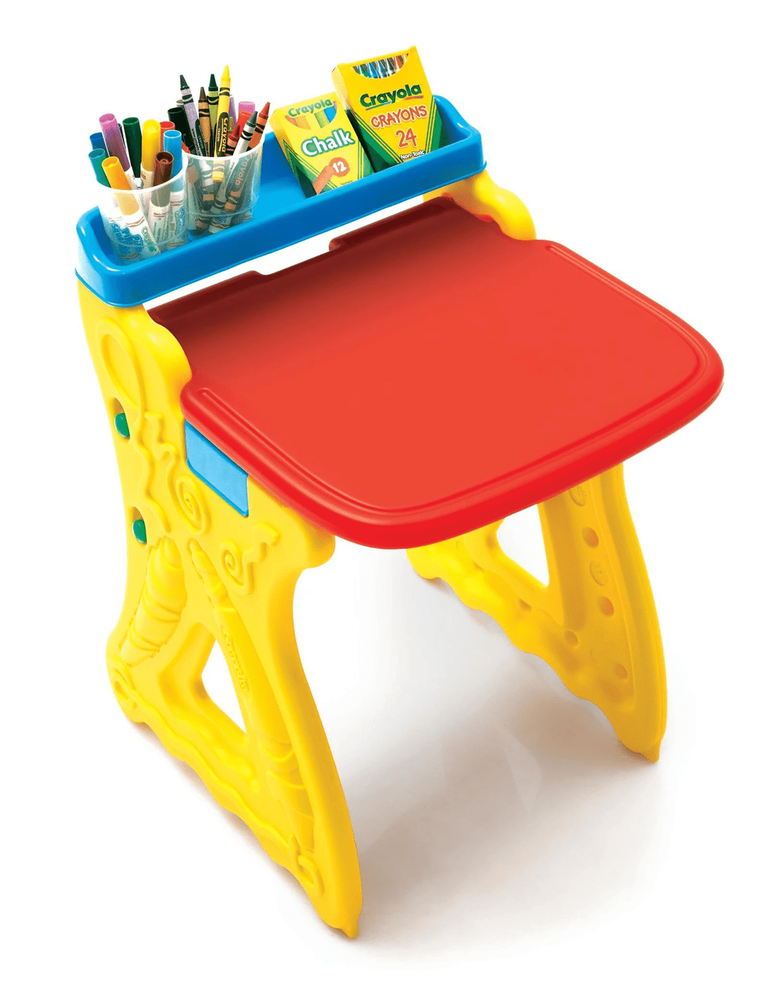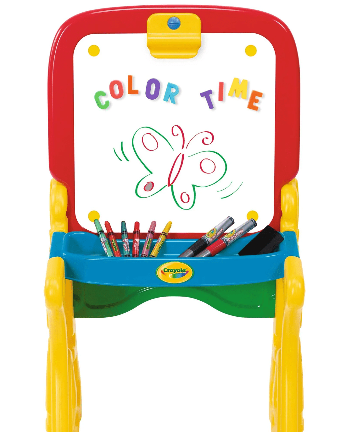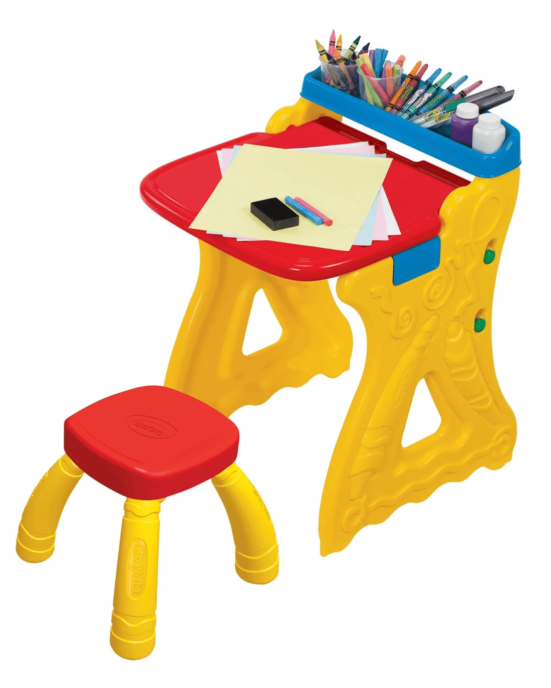 Spark your child's creativity with the Crayola Play N Fold Art Studio, cleverly designed as both a desk and an easel to suit every artistic mood. With a clever chalkboard surface and handy paper clip, it’s so easy for your young artist to switch between drawing and painting. The smartly arranged storage keeps all their supplies within arm's reach, helping your child stay organised as they explore new ideas. This playful studio comes with coloured paper, an eraser, and a selection of magnetic letters and numbers to foster both creativity and learning. Set up their very own art space and watch their imaginative journeys unfold. Treat your child to this fun art studio and encourage their creative adventures today.