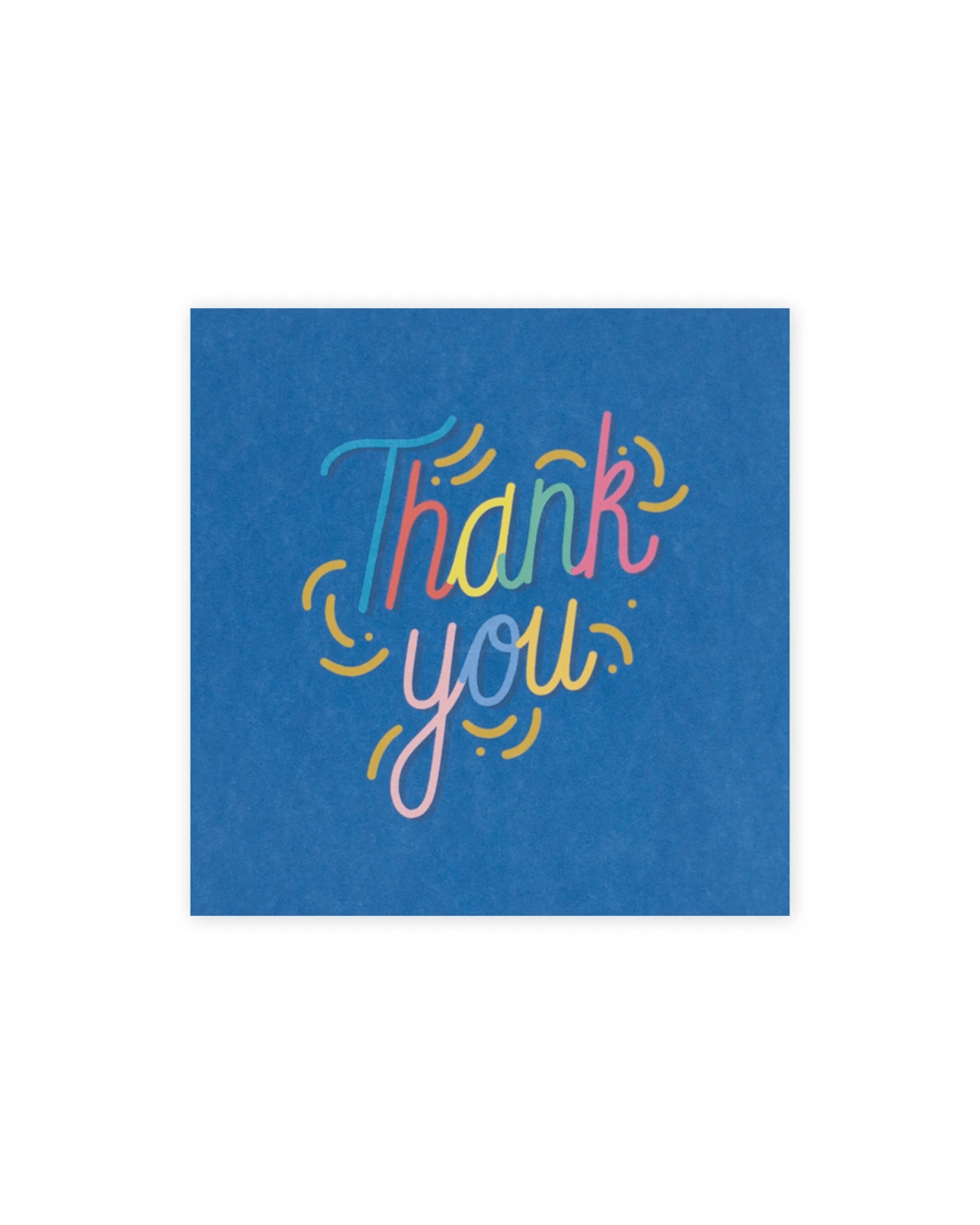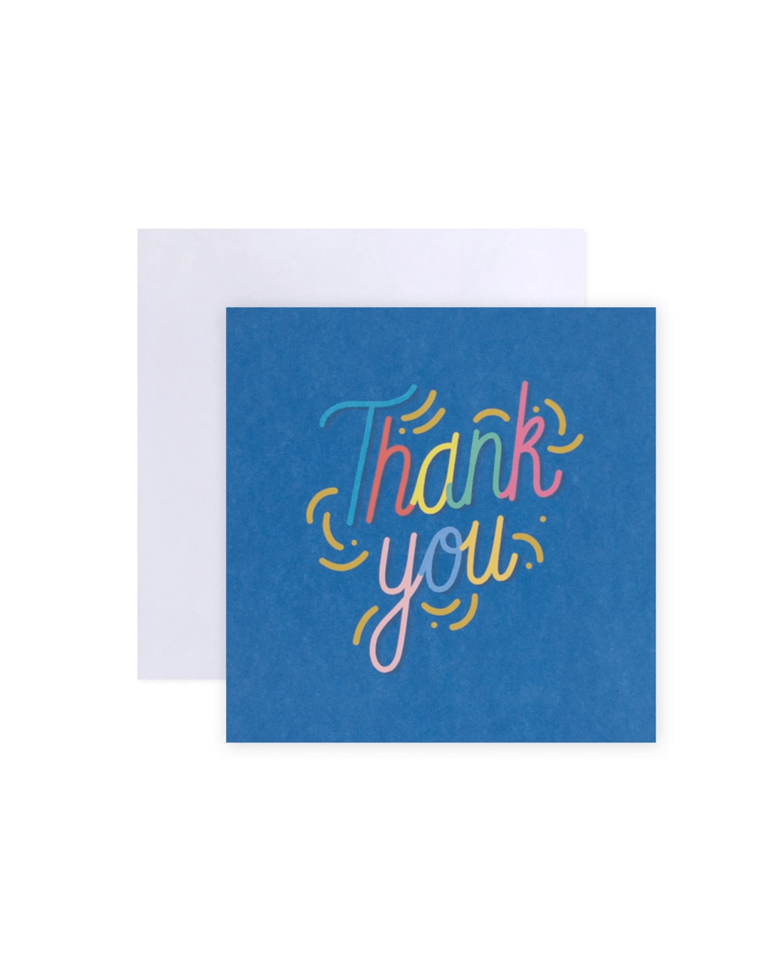 • The front of the card features the message 'Thank you' in colourful contemporary script