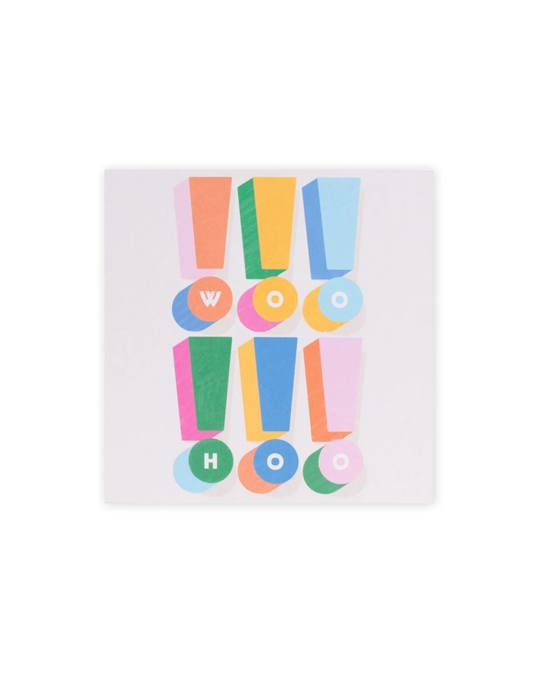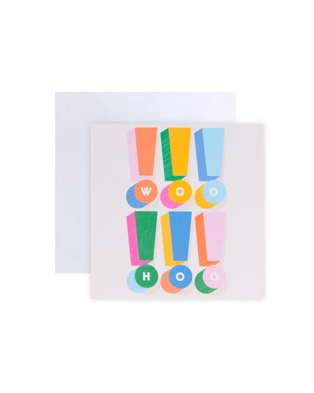 • The front of the card features illustrations of colourful exclamation points with the message 'WOO!!!HOO!!!'