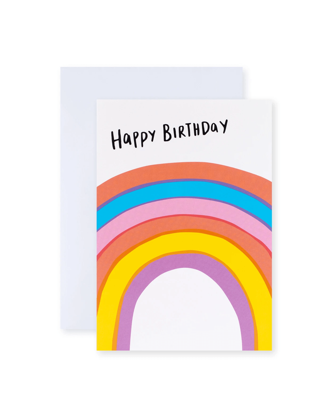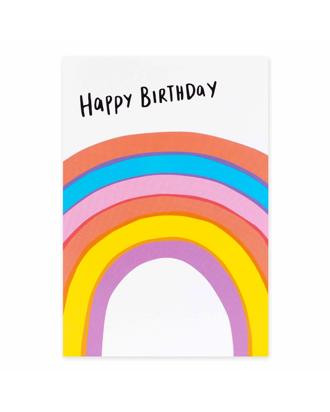 • The front of the card features an illustration of a rainbow alongside the message 'Happy Birthday'