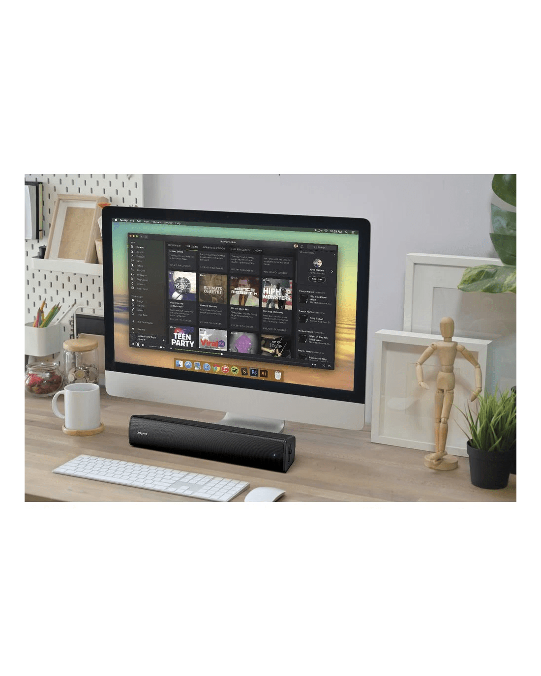 Enjoy high quality audio in your PC setup using the Creative Stage Air V2 PC Soundbar. It comes in a convenient size that slots right under your monitor, and is Bluetooth compatible so you can experience the audio wirelessly. It has custom tuned drivers and a passive radiator for sound that is clear and has depth.