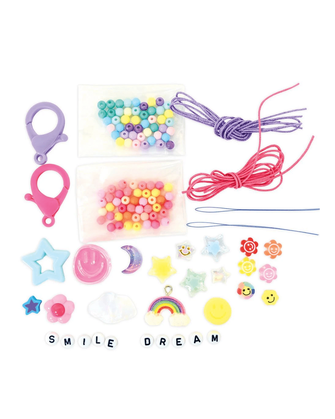• Includes alphabet beads, star clay beads, smiley charms, flower accents and colourful round beads.