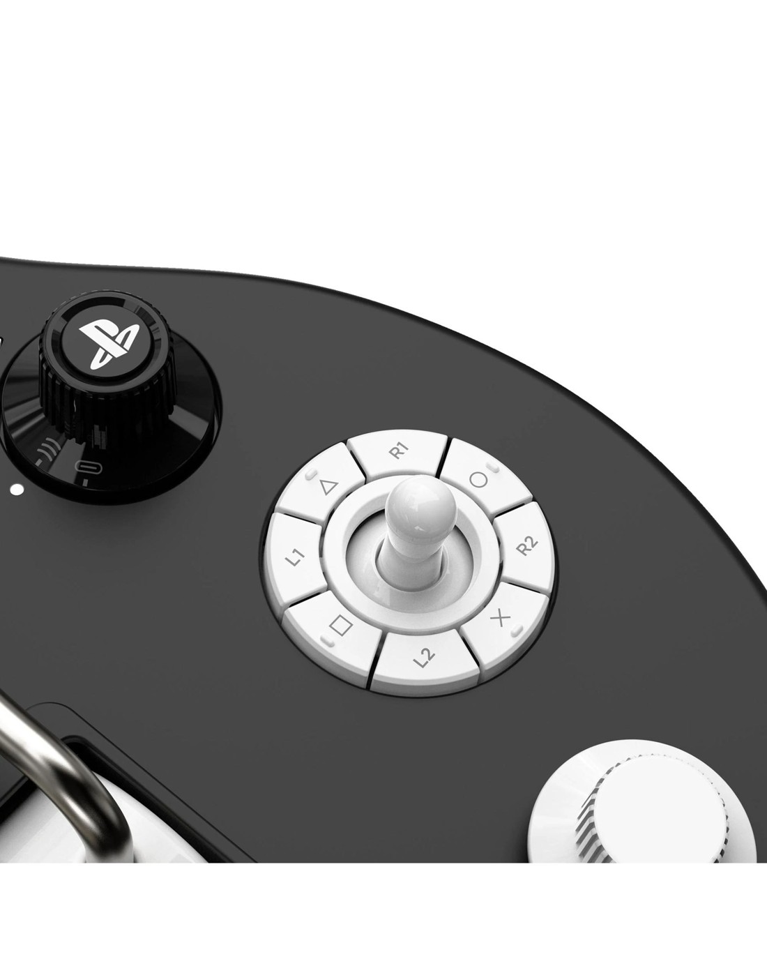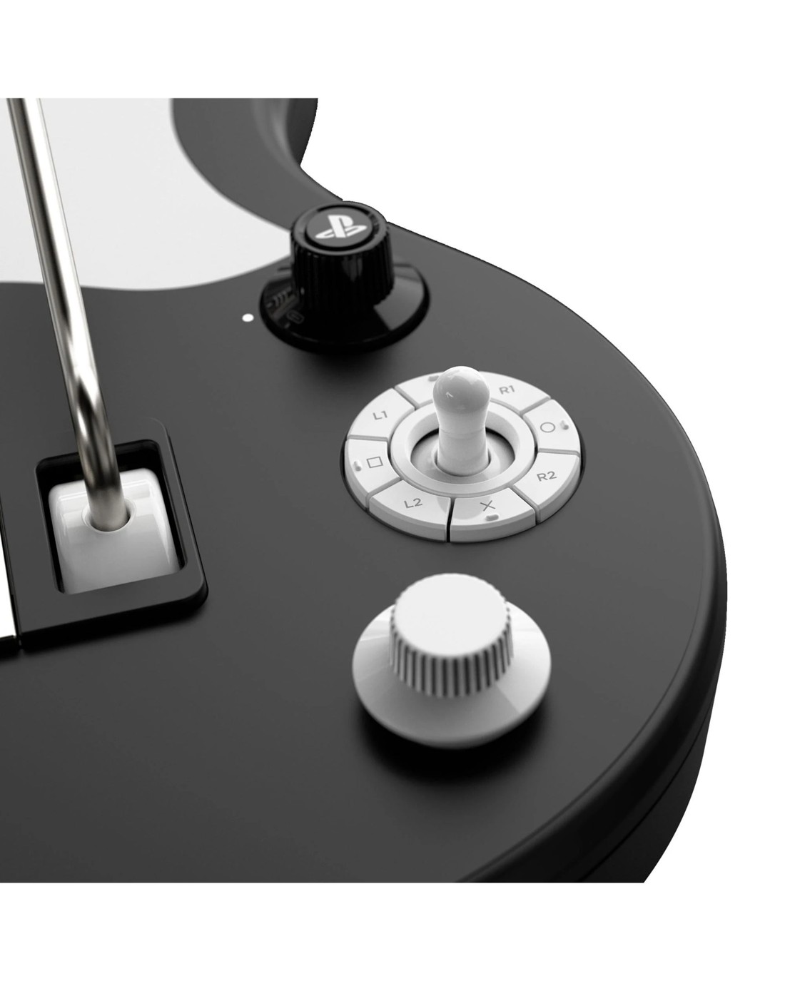 An innovative eight-button Navigation Hub is seamlessly integrated into the design. At its center, a left analog stick ensures effortless menu navigation, while an authentic guitar knob houses the right analog stick.