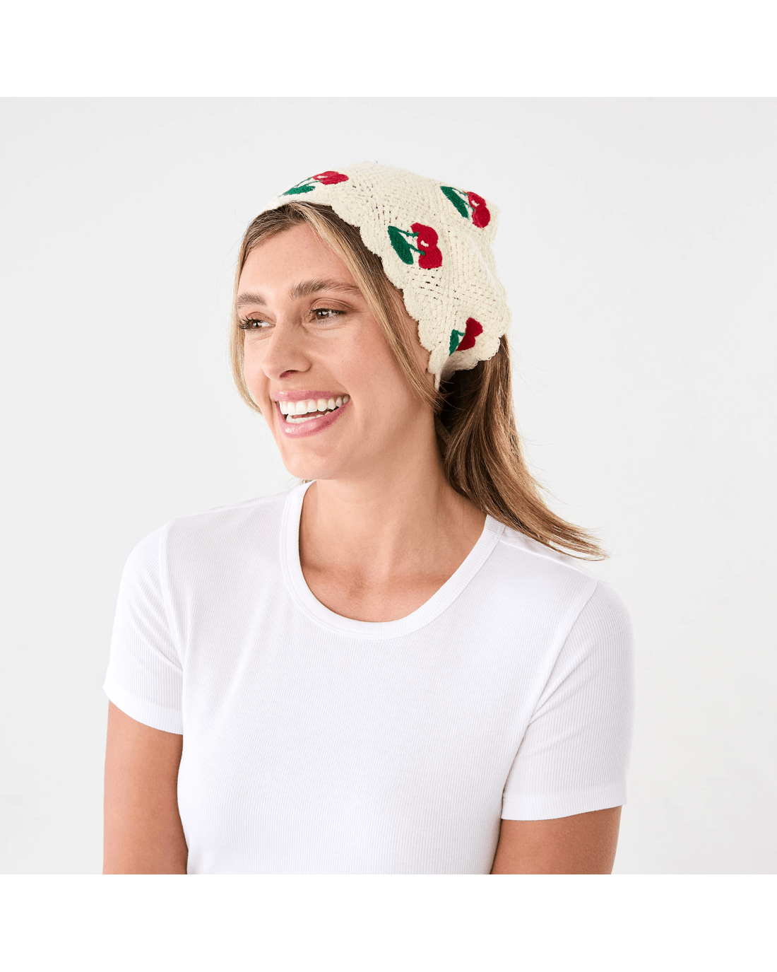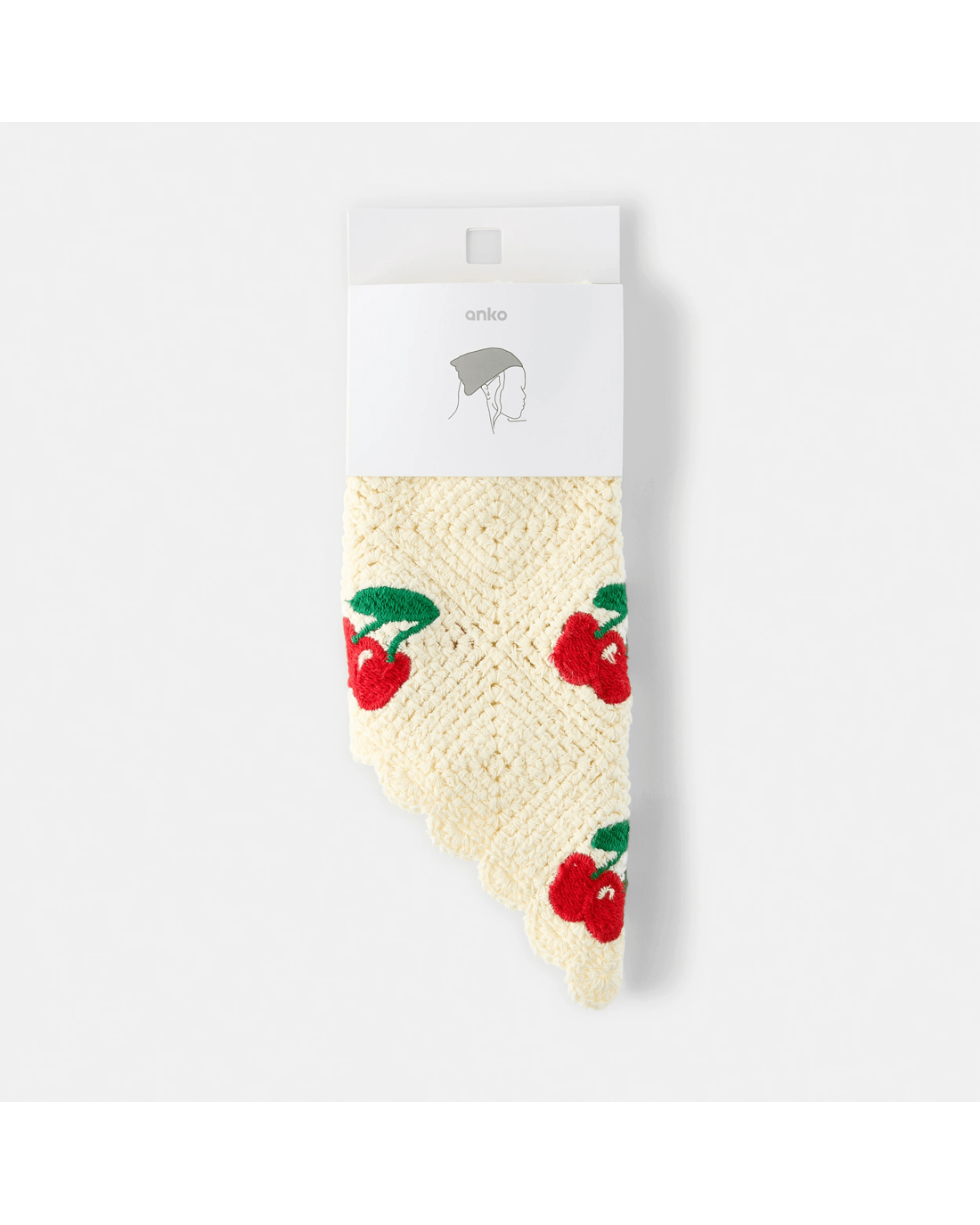 Add a playful touch to your hairstyle with this Crochet Cherry Hair Scarf, featuring a charming design that brightens up any look.