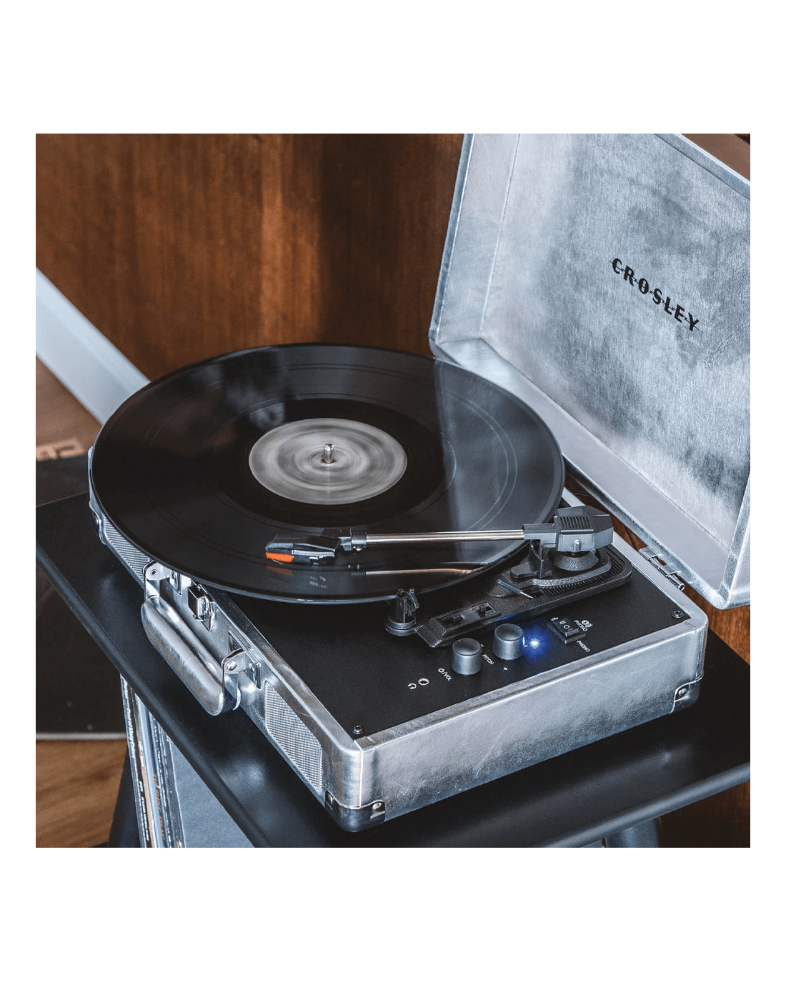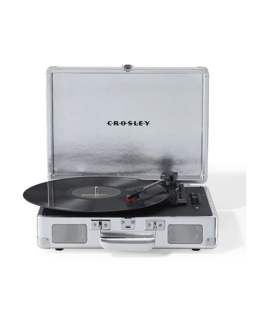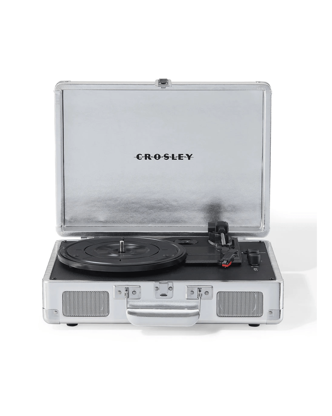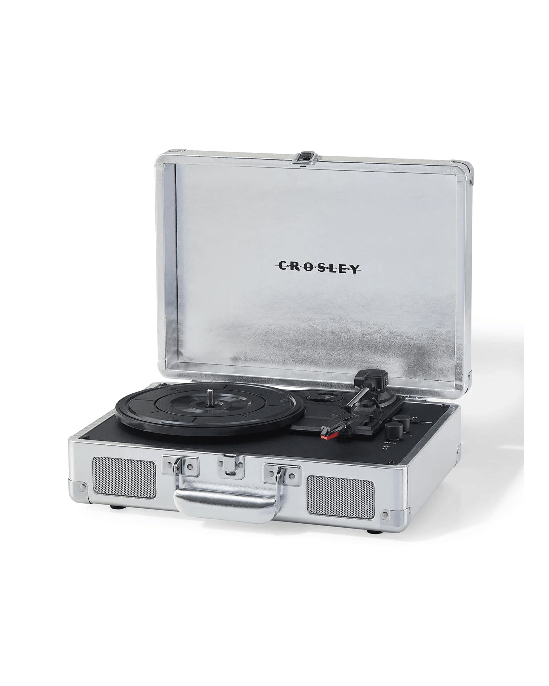 Crosley Cruiser Bluetooth Portable Turntable - Silver - Some say you can’t improve on a classic, but we are here to prove them wrong with the Crosley Cruiser Bluetooth Portable Turntable. Features Bluetooth output functionality, so you can listen to your favourite records on the speaker system of your choice! The upgraded Cruiser design retains its charming portable suitcase shell in a rainbow of colours, three speeds and pitch control for all your listening needs, a Bluetooth receiver and built-in speakers so you can listen on the go — but with the added option to pair it with your favourite external speakers via Bluetooth output.