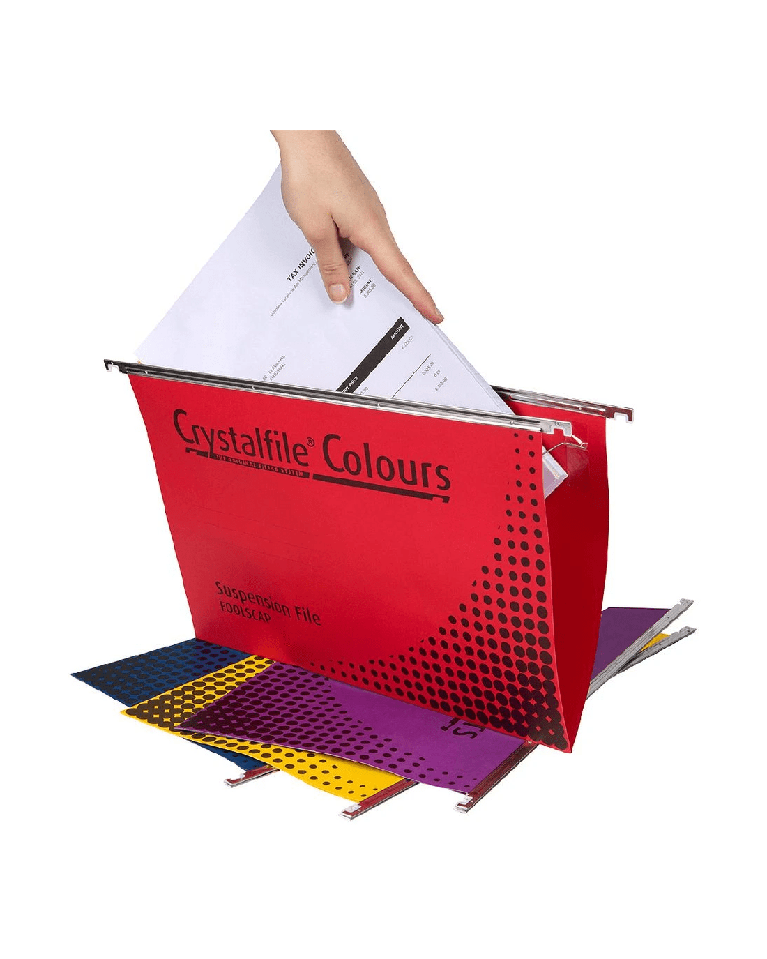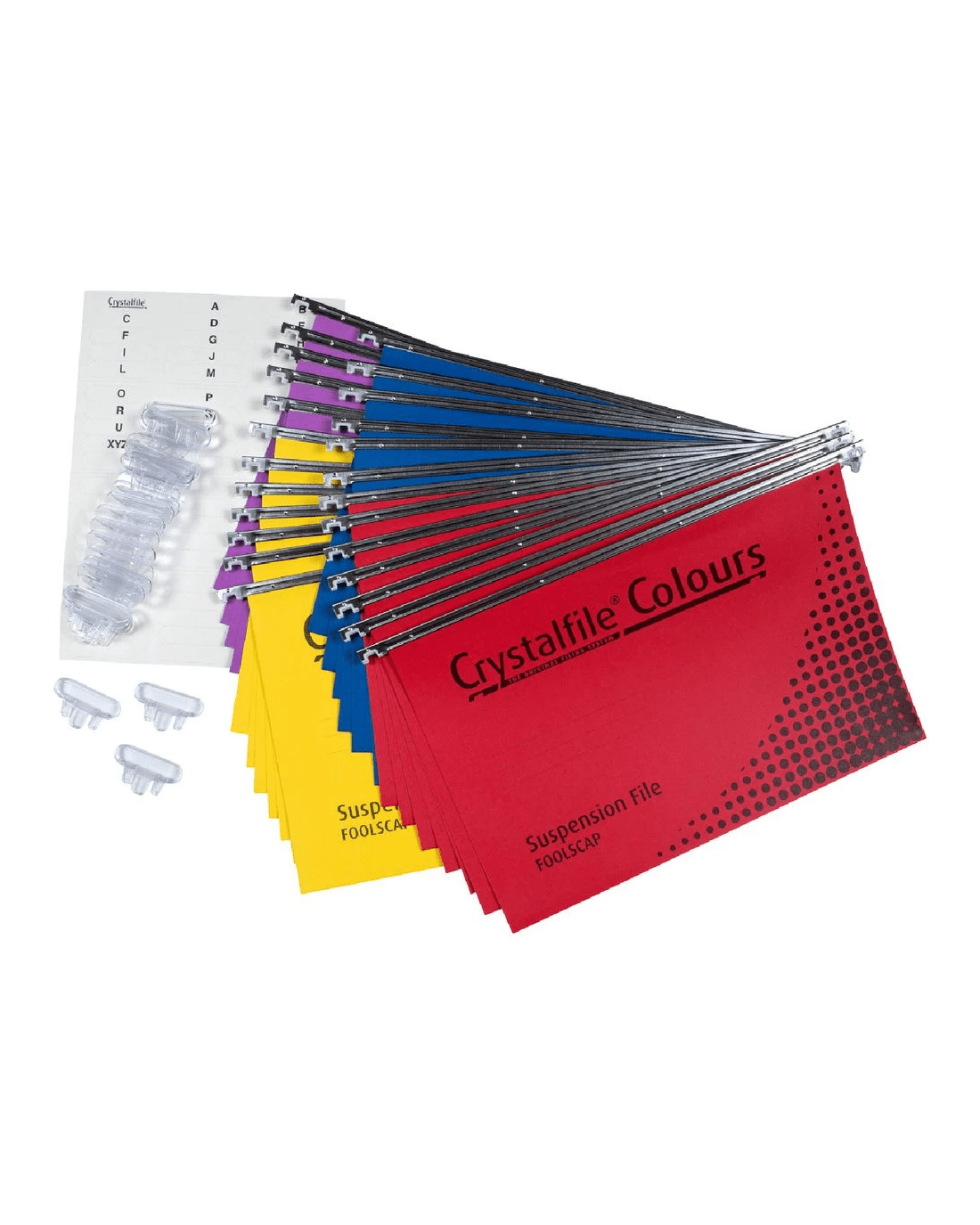 These Crystalfile Suspension Files will allow you to find your documents at a glance. They come with snap proof tabs and inserts so you can alphabetise your filing system. The bright colours will allow you to colour code your filing system.