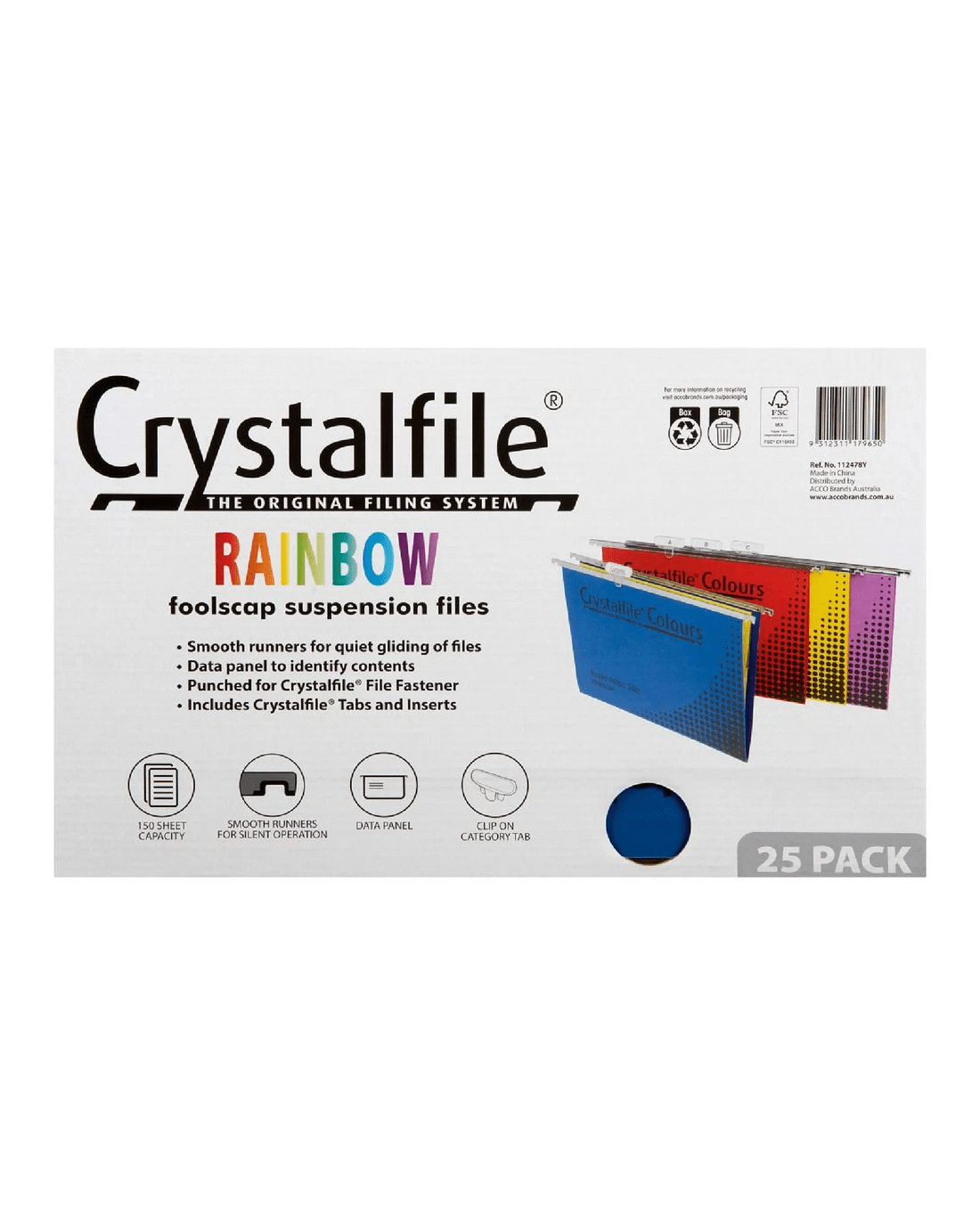 Sold by OfficeworksCrystalfile Foolscap Suspension File Assorted Colours 25 Pack