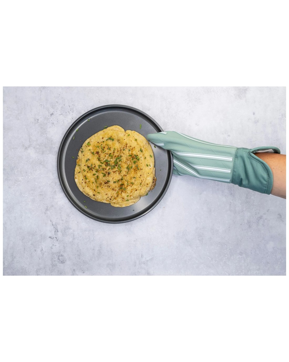 Cuisena Silicone and Fabric Oven Glove (model 94267) combines durable silicone with soft fabric to deliver reliable heat protection and a comfortable fit. The green striped design gives a contemporary look while the flexible construction provides a secure grip on hot pots, pans and baking trays. Designed for safe handling during cooking and baking, it helps reduce the risk of slips and burns. Includes a 12-month warranty for added peace of mind.