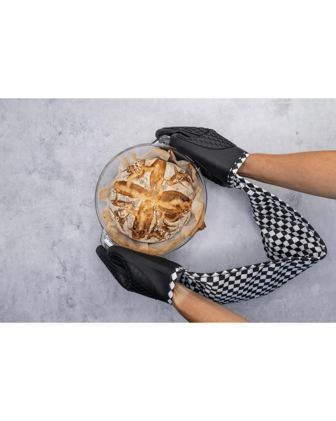 Cuisena Silicone Fabric Double Oven Glove — Heat-Resistant Black Check Kitchen Mitt - Black