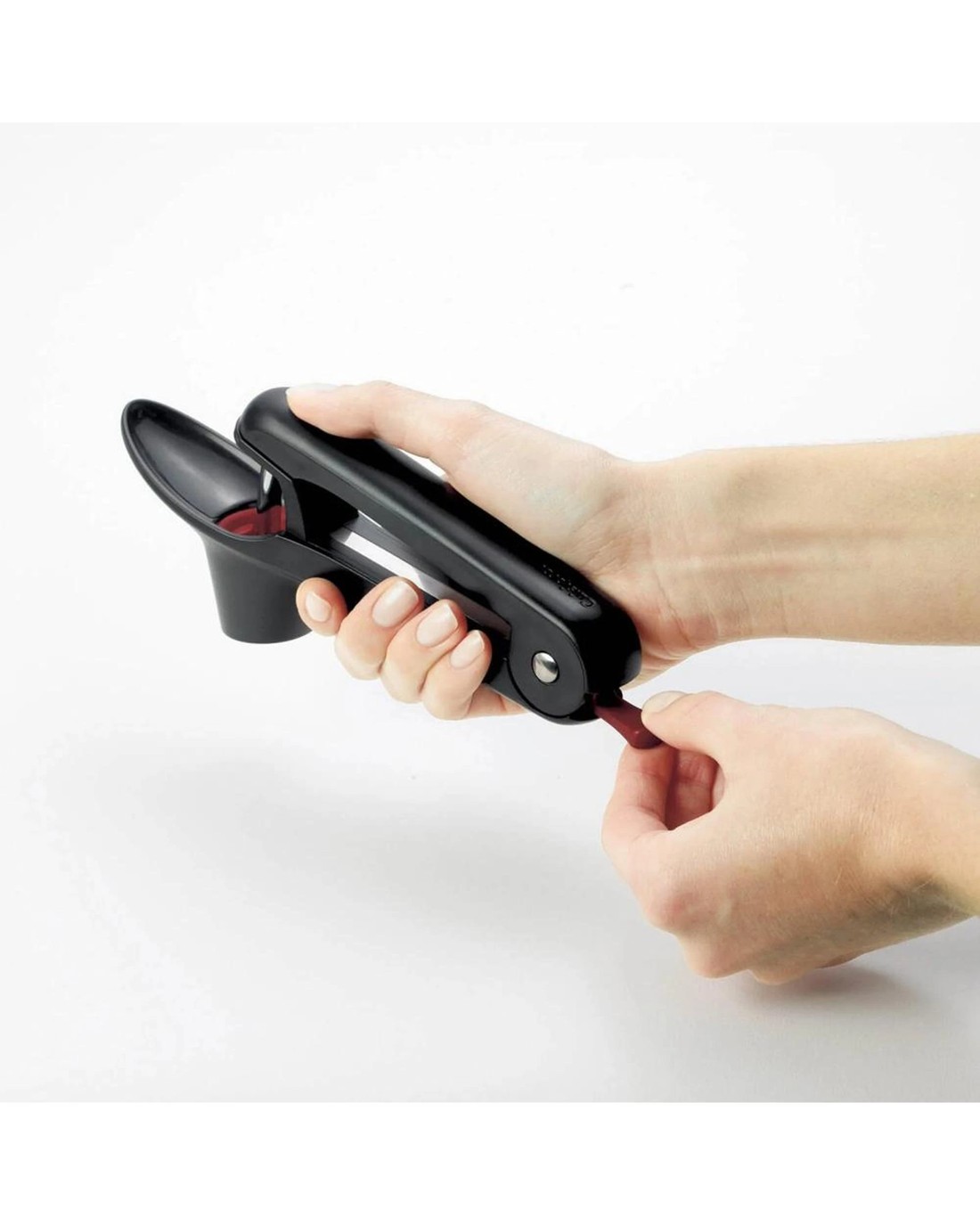 The Cherry & Olive Pitter's removable splatter shield keeps juices contained and directed downward. Large holder accommodates Bing cherries, and a recessed cup holds smaller varieties of cherries and olives. Comfortable, non-slip handle absorbs pressure while you squeeze.