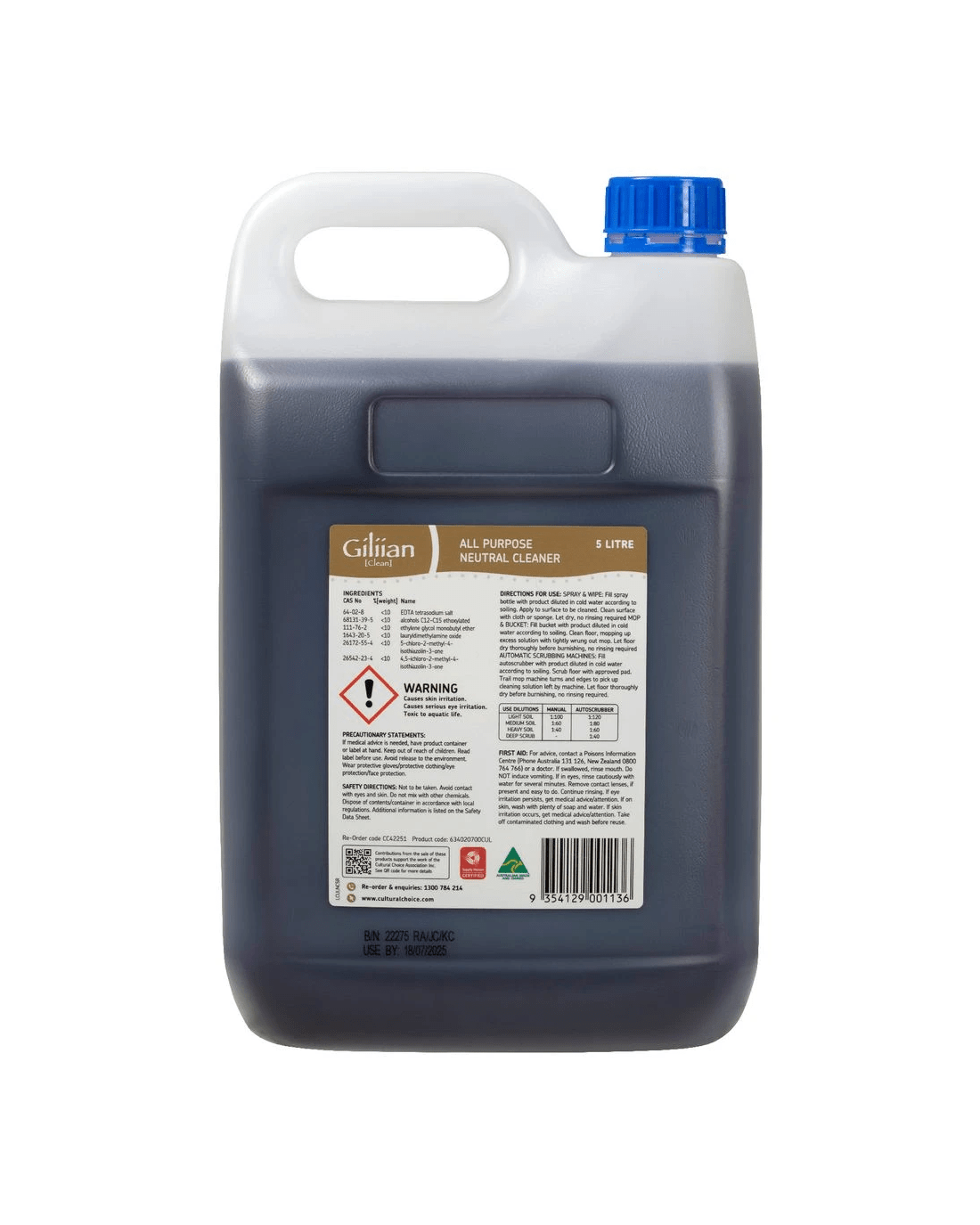 This Cultural Choice All Purpose Natural Cleaner is perfect for all kinds of cleaning. Use it with cold water in a spray bottle, with a mop or with automatic scrubbing machines to clean any part of the house.