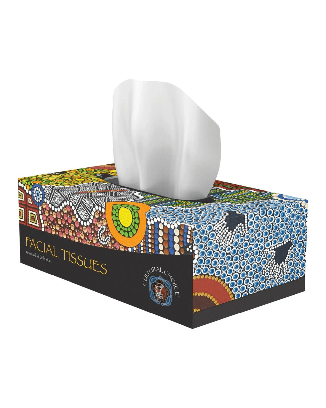 These Cultural Choice Facial Tissues are a great option for adding to your workspace, bathroom, reception area or even your home. The tissue box features an Aboriginal art design created by Indigenous artists.