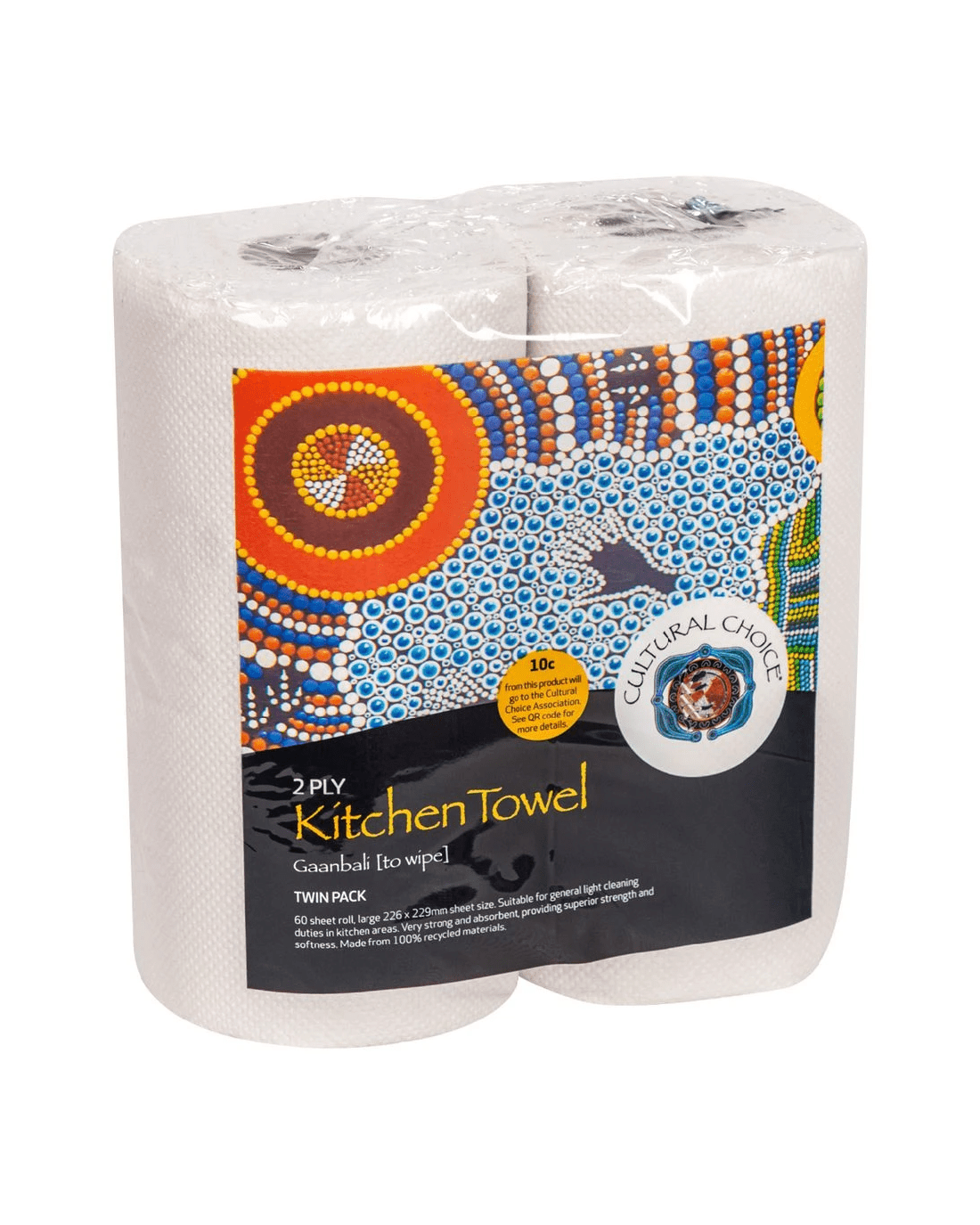 These Cultural Choice Paper Towels are a great option for adding to your workspace, bathroom, or your home. The packaging also features traditional Aboriginal art design created by the Kamilaroi peoples.